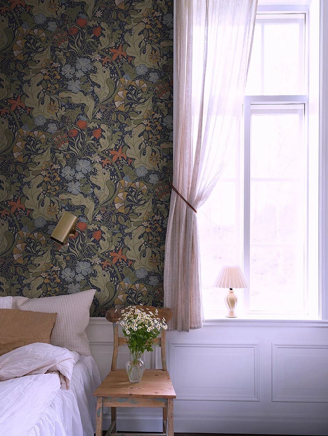 - MusterfarbeBeigebraun, Cremeweiss, Grüntöne, Hellcurrygelb, Orangebraun, Taubenblau