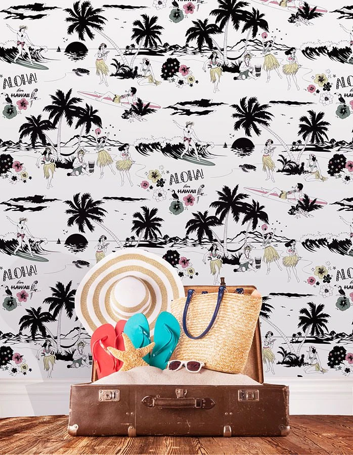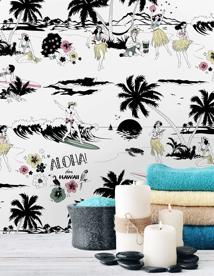 Willkommen auf Hawaii – Die perfekte Auszeit vom Alltag wartet mit dieser flotten Mustertapete auf alle, die auch beim Träumen wunderbar entspannen können. Ein Blick auf die musikalischen Südseeschönheiten im exotischen Ambiente und schon ist das Gute-Laune-Gefühl da. Feiern Sie die Ode an die pure Lebensfreude mit der Designtapete von Dupenny – Aloha!