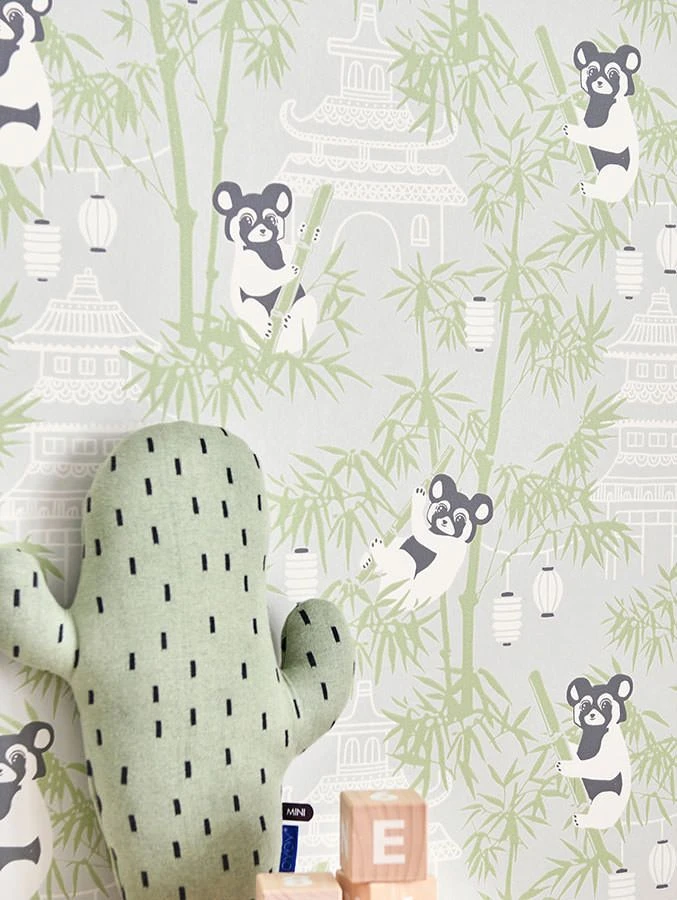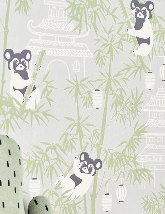 Designerlabel Majvillan lässt die putzigen Pandabären in China eine große Lampionparty feiern. Die fröhliche Kindertapete in Grün, Grau und Weiß besticht durch feine Detailarbeit, die sich mit chinesischen Tempeln und Palästen im Hintergrund zeigt und in eine ferne Welt führt. Die stimmungsvolle Designer Tapete sorgt für ein ausgeglichenes Ambiente mit spielerischer Freude.