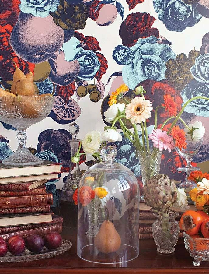 Saftige Frucht-Blumen-Bouquets versprühen Fülle, Lust und Leidenschaft im Raum. Sie regen im wahrsten Sinne des Wortes den Appetit an, z.B. auf gestalterische Kreativität oder Rituale für die Schönheit. Wie ein Parfum, dessen verschiedene Essenzen sich auf der Haut entfalten, gibt die Tapetenkreation von Lisa Bengtsson ihre zauberhaften Nuancen in den Raum ab.