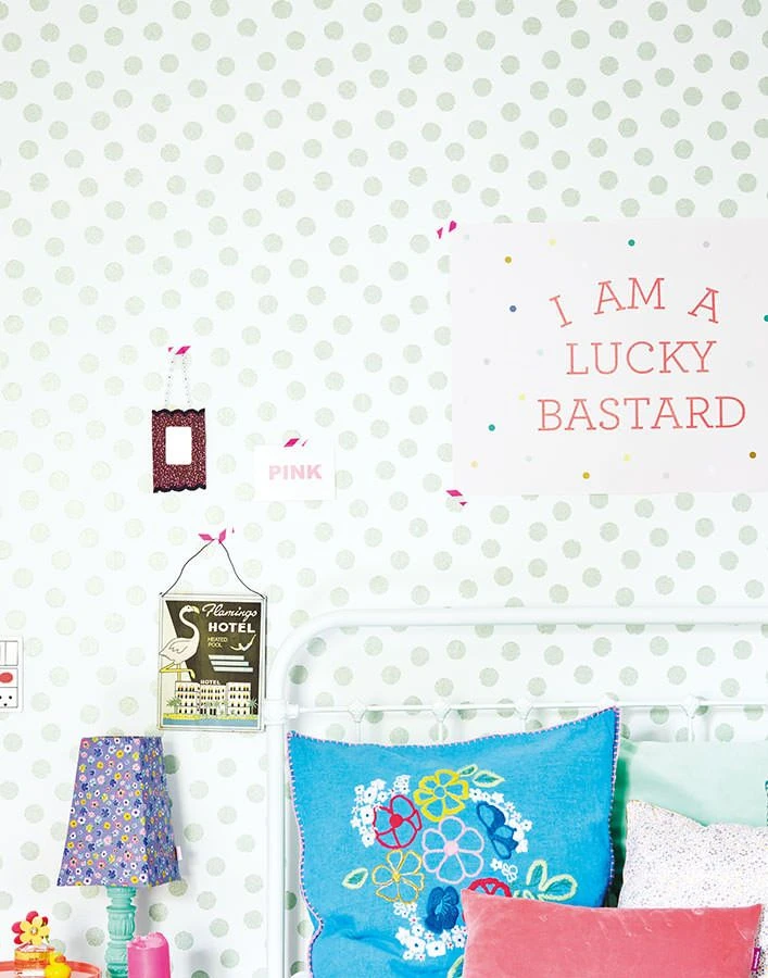 Punkte in frischem Pastellgrün mit Glitzereffekt sorgen hier für Leichtigkeit und Lebendigkeit. Sie sind als fühlbares Relief in die Oberflächenstruktur der Vliestapete eingearbeitet und heben sich sowohl optisch als auch haptisch angenehm vom cremeweißen Untergrund ab. Den Kombinationsmöglichkeiten sind keine Grenzen gesetzt: Andere Pastellfarben oder verschiedene Grüntöne geben ein schönes Bild. Oder Sie betonen den Glitzereffekt mit weiteren glanzvollen Deko-Elementen.