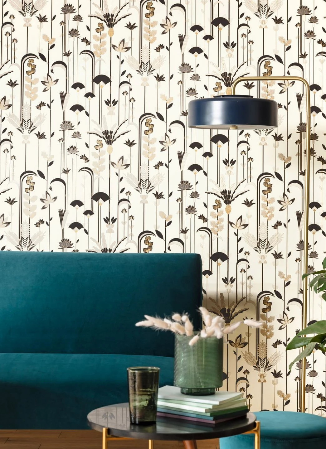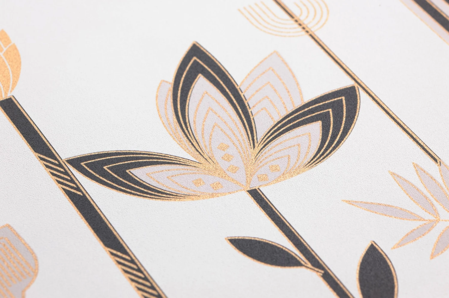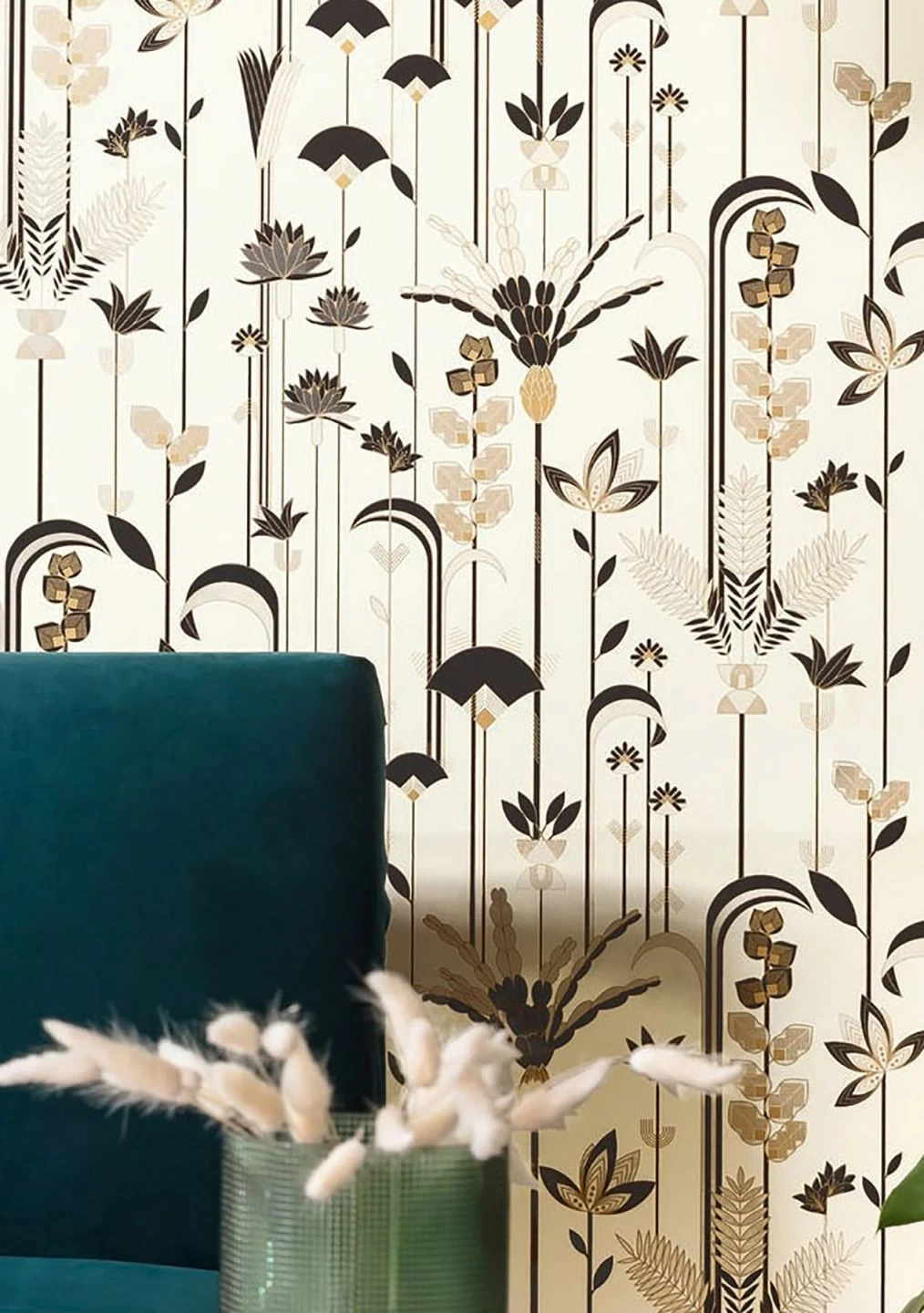 Dass Vielfalt und Stilisierung kein Widerspruch sein müssen, zeigt das Art-Deco-Design dieser Vliestapete mit Vinyloberfläche. Blüten und Blätter in den verschiedensten Formen greifen immer wieder auf Elemente des Art Deco zurück. Die Konzentration auf wenige, zum cremeweißen Hintergrund passende Farben gibt dem Blumenmuster Zusammenhalt. Das scheuerbeständige Oberflächenmaterial eignet sich auch für Ihr Badezimmer perfekt.