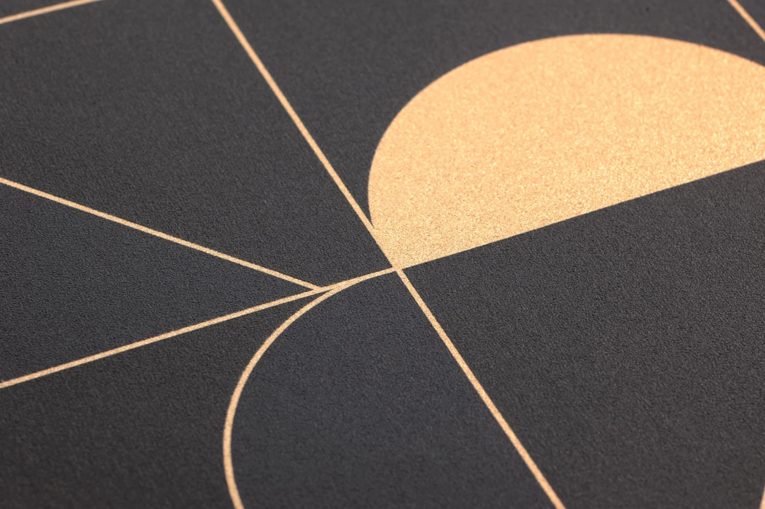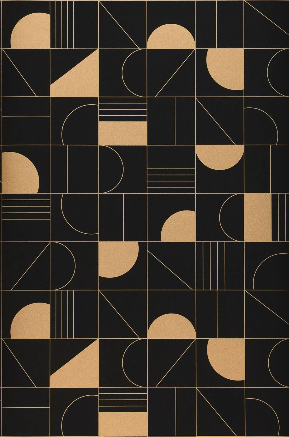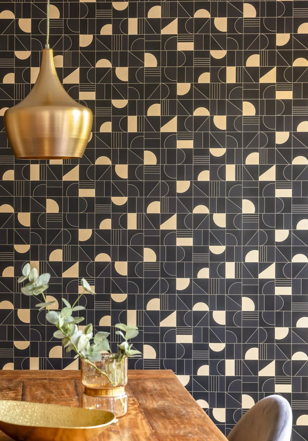 Diese luxuriöse Art-Deco-Tapete belebt Ihre Wände mit Kreisen und Dreiecken, feinen Linien und verschieden dimensionierten Rechtecken. Die Kombination von Perlgold und Schwarzgrau strahlt hochwertigen Schick aus und ist auf vielfältige Weise kombinierbar. Das unempfindliche Vinyl der Oberfläche sorgt dafür, dass „Cubit“ scheuerbeständig ist und selbst Ihrem Badezimmer den Look des Art Deco geben kann.