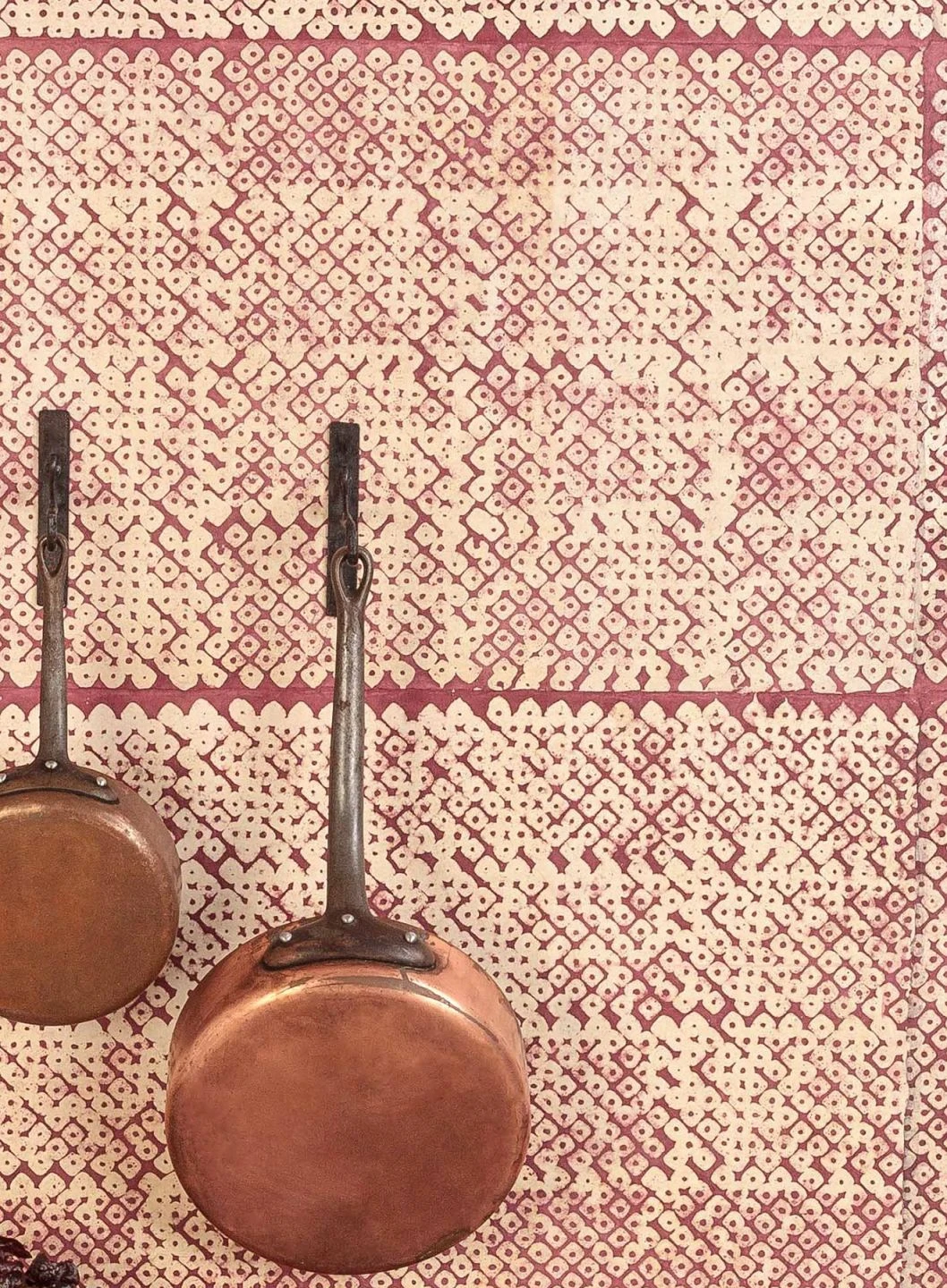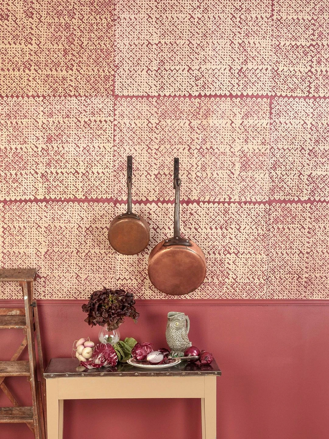 Das bordeauxfarbene Muster auf beigem Grund lässt an zarte, gebatikte Seidentücher im Ethno-Stil denken. Und genau so wurden die Blätter dieser außergewöhnlichen Papiertapete von Le Monde Sauvage hergestellt. In einer besonderen Batiktechnik handbedruckt, zaubert „Dakini“ einen Hauch von Exotik an Ihre Wände. Kombiniert mit passenden Wandfarben und Einrichtungselementen im Shabby Chic, könnte Ihr Raum individueller nicht sein als mit diesen Unikaten!