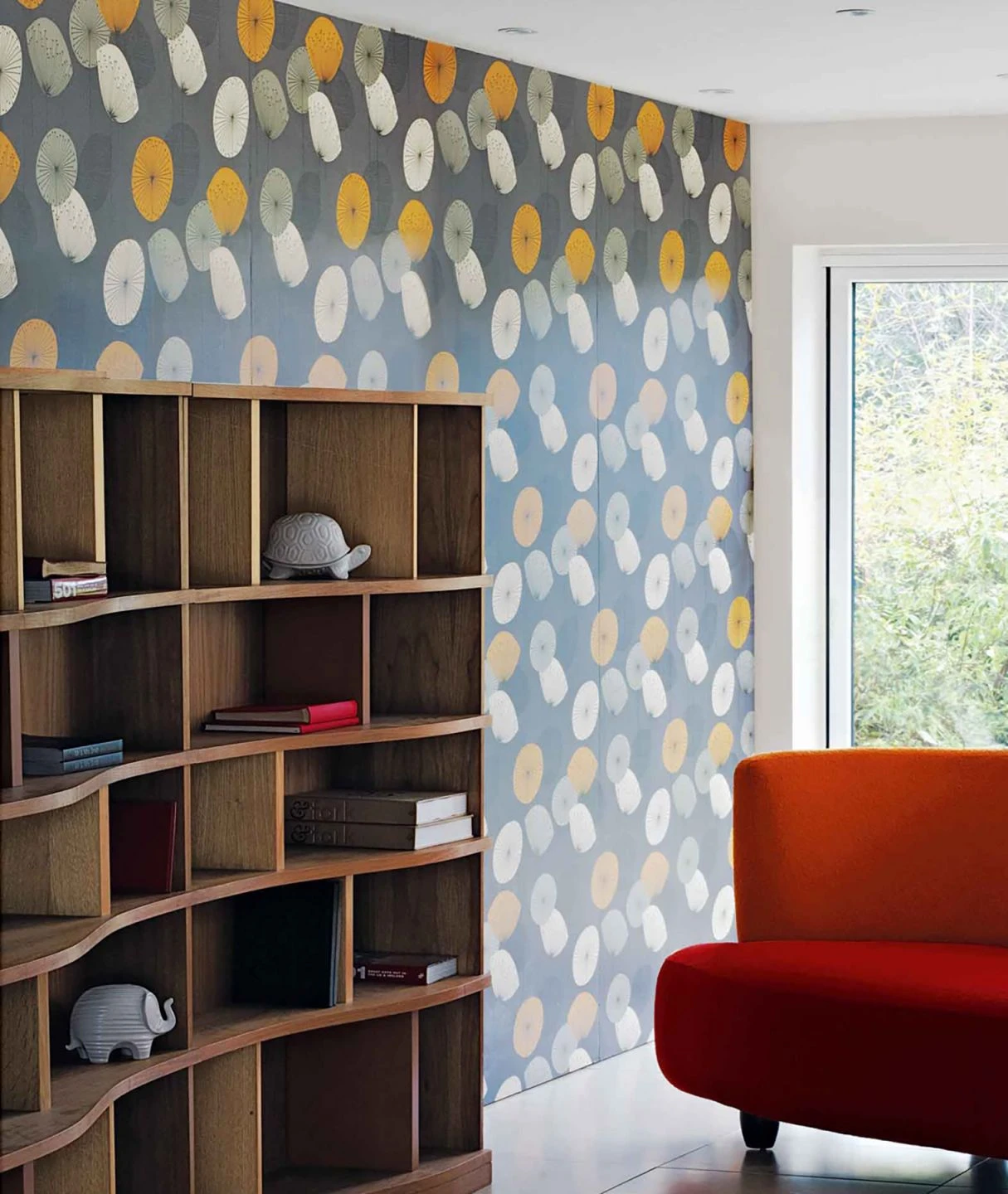 Sehr warm und mit einer kräftigen Prise Retro-Spirit zaubert die Grafiktapete mit stilisierten Löwenzahnblüten ein authentisches Vintage-Feeling in jeden Raum. Anthrazit, Gelborange, Hellelfenbein, Perlbeige und Schwarz bewirken eine dezente optische Verschmelzung der Stilblüten und verströmen beflügelnde Energie.