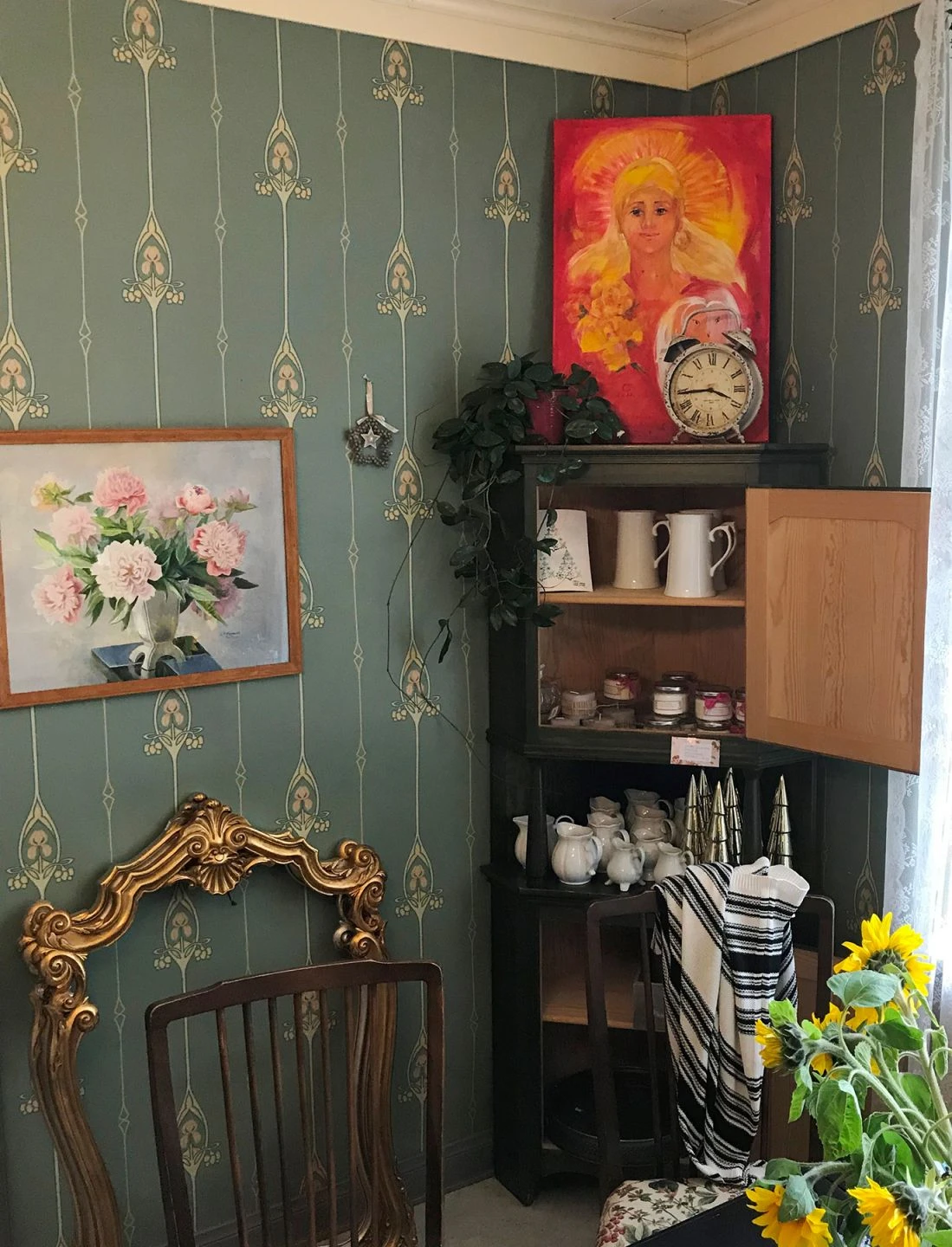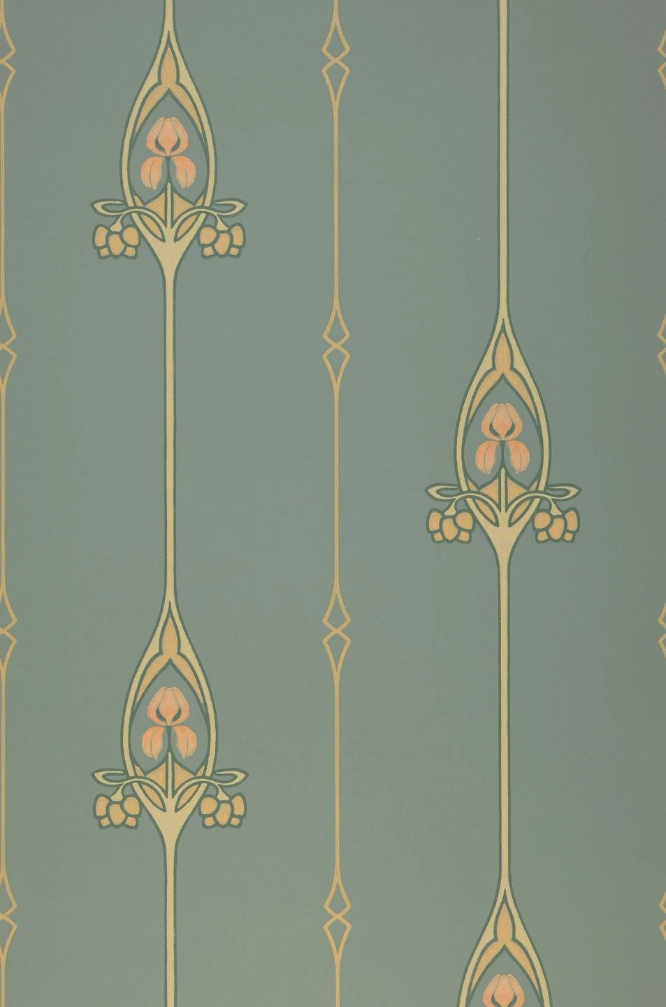Klassik ist in! Das betörende Jugendstilmuster, das graphische und florale Elemente gekonnt vereint, bevorzugt Beige, Elfenbein, Zartrosa und Kieferngrün, um sich kontrastreich vom minttürkisen Hintergrund abzuheben. Eleganz mit dem gewissen Etwas umhüllt den Raum, welche durch die Leimdruckoptik der Papiertapete zusätzlich unterstrichen wird.