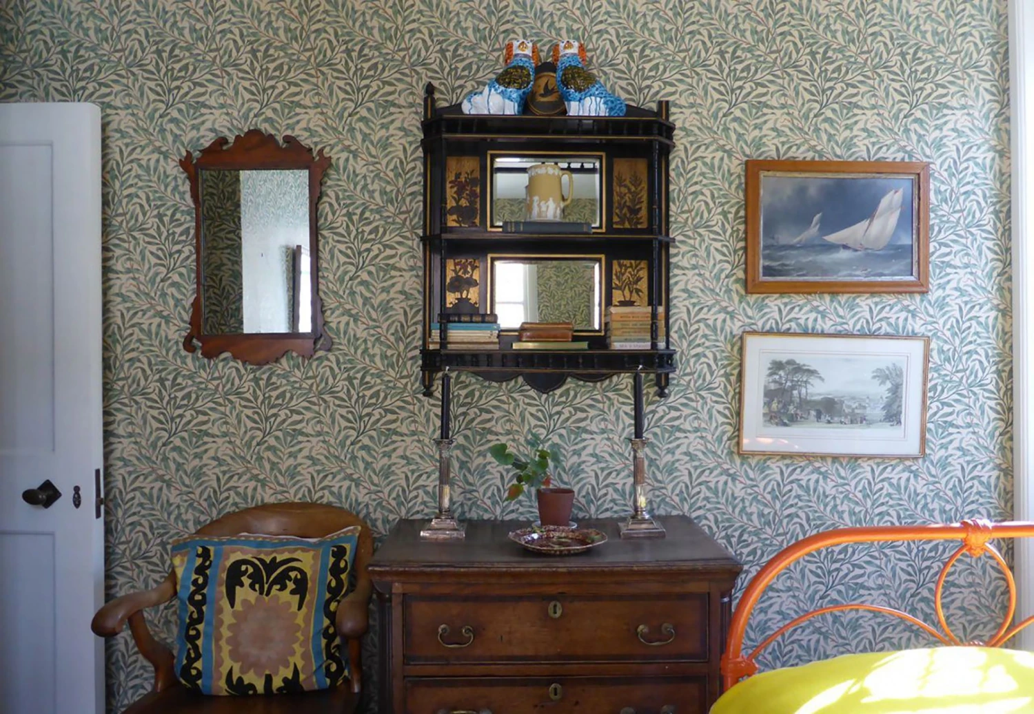 Wie handgemalt wirkt das filigrane Geflecht von Blättern und Zweigen, das sich über Ihre Wände rankt. Blattadern in dunkleren Grüntönen lassen die Blätter fast lebendig wirken. Eine leichte Brise scheint sie in verschiedene Richtungen zu bewegen. Das Retro-Design passt sich dem Landhausstil ebenso an wie dem Shabby Chic oder einer Einrichtung im Vintage-Look.