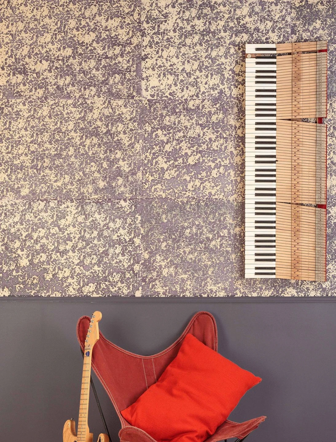 Ein Meer von violetten Blüten auf beigem Grund ziert die Bögen der Papiertapete von Le Monde Sauvage. Die kräftige Musterfarbe hebt sich angenehm vom beigefarbenen Untergrund ab. Ethno-Look und Shabby Chic finden auf der handgebatikten Tapete zu einer perfekten Synthese und ermöglichen Ihnen eine Vielzahl attraktiver, individueller Kombinationen in Ihrem ganz persönlichen Stil.