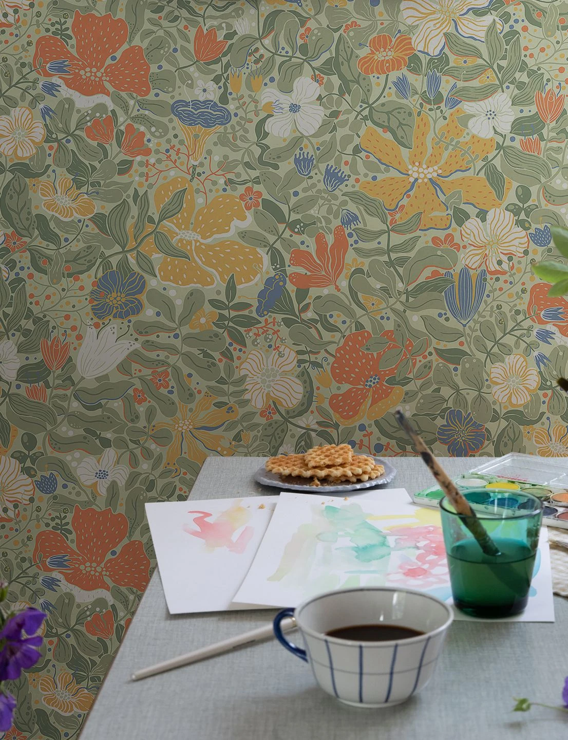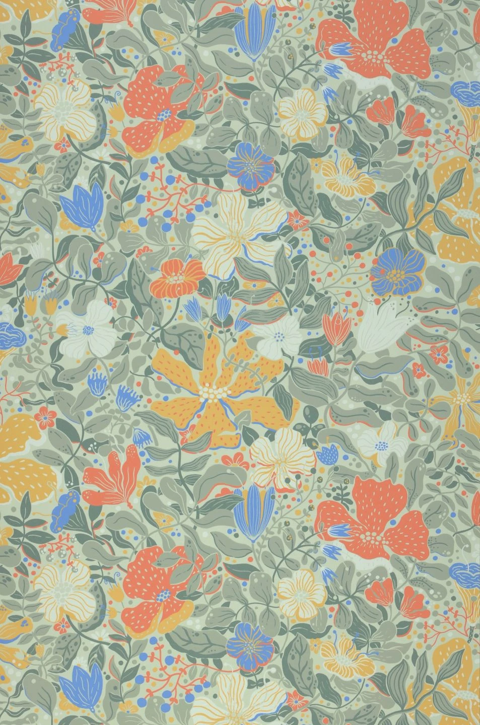 Die bunten Farben dieser prächtig ausgearbeiteten Blumentapete sind leicht gedeckt und verströmen eine Andeutung von sympathischer Nostalgie. Ihre Buntheit wird so gefasst und in einen ästhetischen Zusammenhang gestellt. Ähnliches leisten die phantastischen Formen von Blüten und Blättern, die bewegt und lebhaft wirken. Vliestapete Elsie belebt Ihren Raum mit der unerschöpflichen Vielfalt ihres Blütenmeers.