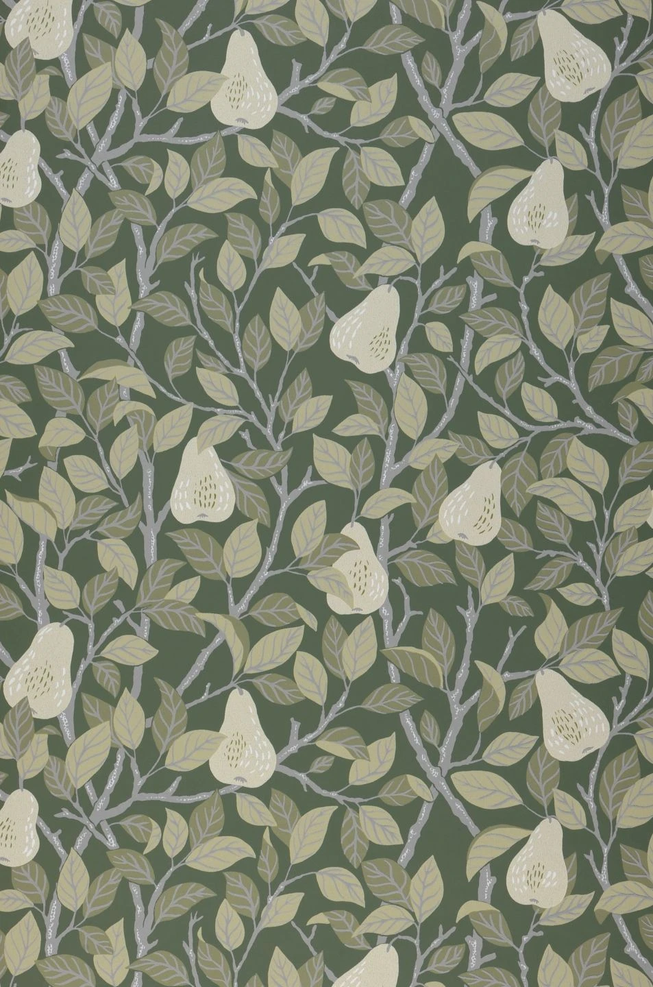 Durch ihr helles Kieselgrau leuchten die reifen Birnen zwischen den grauen Zweigen der Baumkrone und den Blättern in Schilfgrün und Zartgrün klar hervor und erzählen vom Spätsommer mit seiner Fülle an Früchten. Die harmonisch aufeinander abgestimmten Grün- und Grautöne machen „Estelle“ zu einem ästhetischen Genuss für Ihr Wohn- oder Esszimmer oder Ihre Küche. Mit den passenden Farben oder warmen Holztönen kreieren Sie ein stimmiges Ambiente.