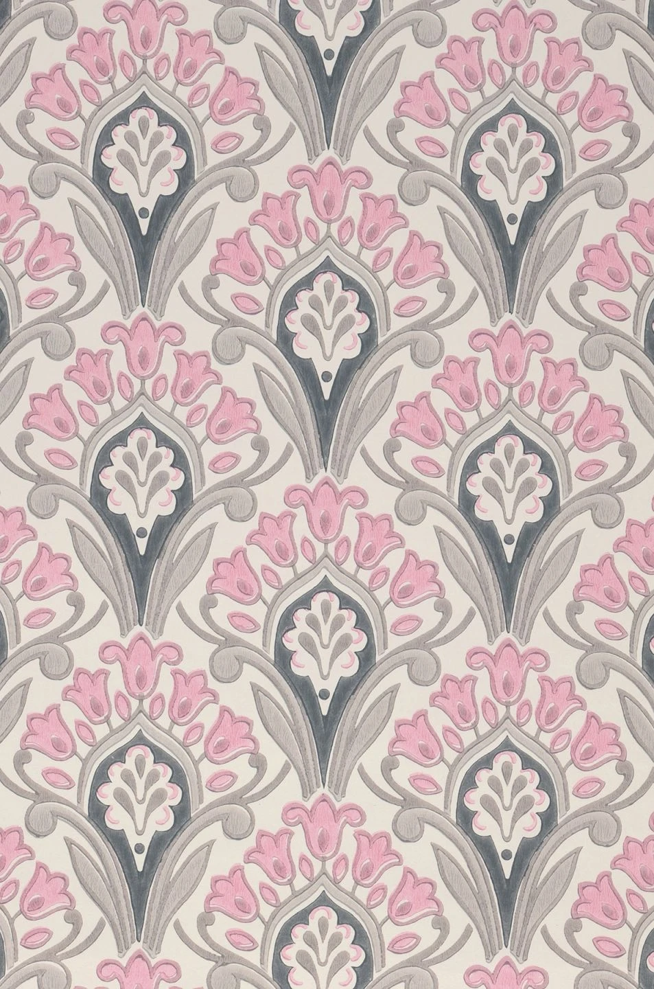 Ganz klassisch angeordnet sind die Elemente im Jugendstil, die sich aus stilisierten Blüten und Blättern zu einem Gesamtbild zusammensetzen. Helles Rosa und Grautöne auf Cremeweiß wirken duftig und zart. Ein hell eingerichtetes Wohnzimmer oder ein Schlafzimmer in Weiß und Rosa erhält einen Hauch von Klasse, der durch die besondere Ästhetik des Leimdruckverfahrens, mit dem die Papiertapete hergestellt wurde, wirkungsvoll unterstrichen wird.