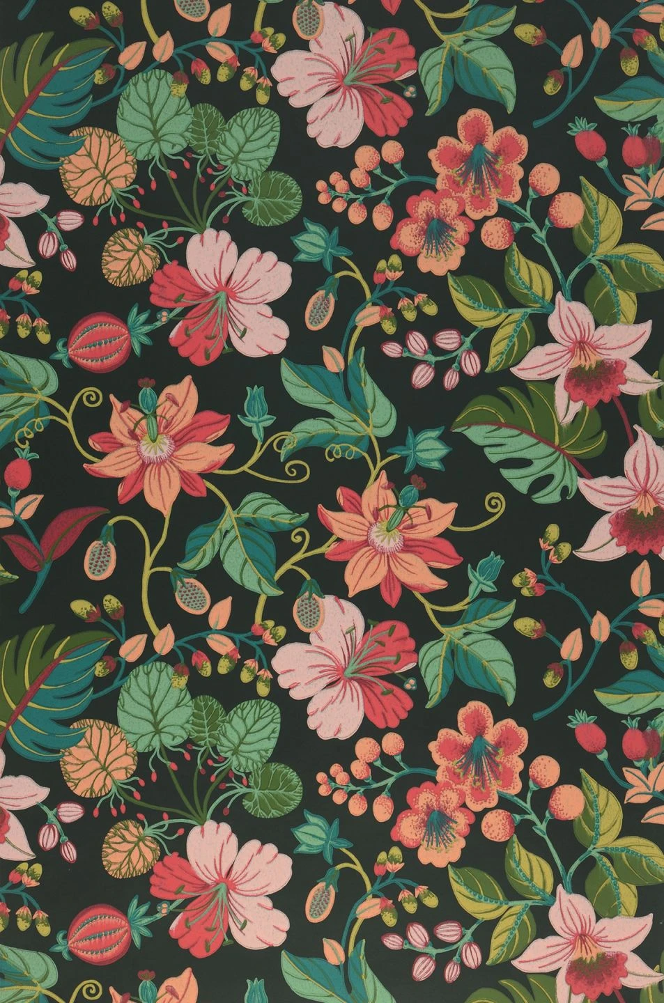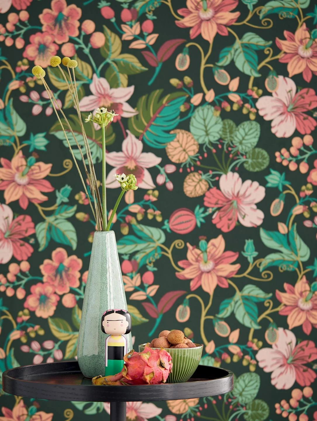 Frida Kahlo sagte einmal: „Ich male Blumen, damit sie nicht sterben“. Wie für die unendliche Ewigkeit sind auch diese Blumen und Früchte erschaffen. Auf schwarzgrünem Fond leuchtet die Lebenskraft in kräftigen Farben und reißt den Betrachter mit. Feiern Sie das Leben, die Natur und sich selbst mit dieser dekorativen pflegeleichten Vliestapete.