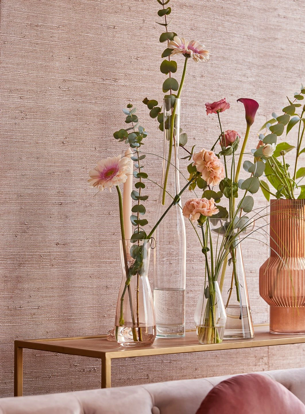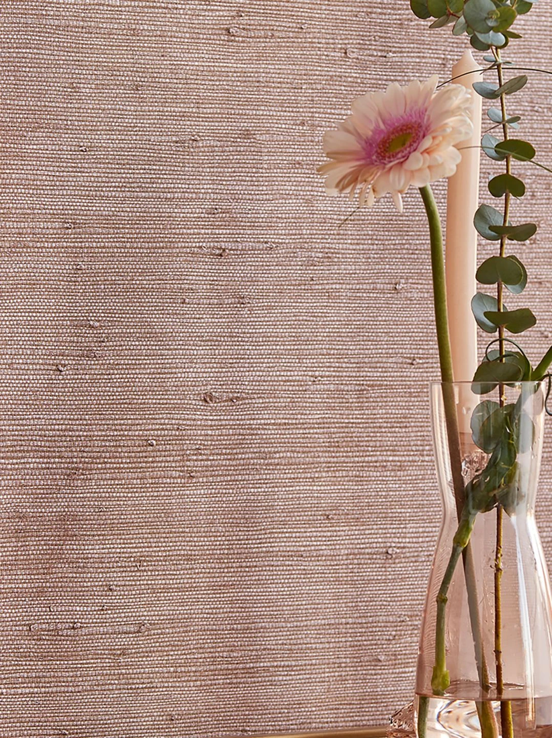 Farbgebung und Naturmaterial wirken zusammen und erzeugen die hochwertige und gleichzeitig naturverbundene Ausstrahlung, die von Grass on Roll 11 ausgeht. Der edle, sanft schimmernde Farbton von Rosenholz gibt den natürlichen Gräsern, die getrocknet, gefärbt und als Gewebe auf die Papiertapete aufgebracht wurden, ihren besonderen Charme. Einrichtungselemente aus dunklem Holz unterstreichen die Farbwirkung raffiniert.