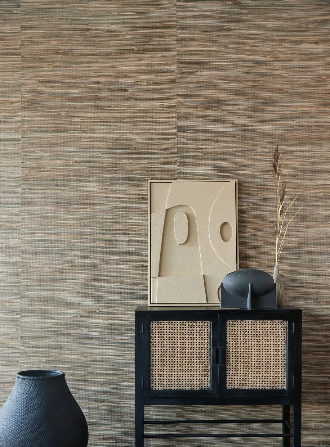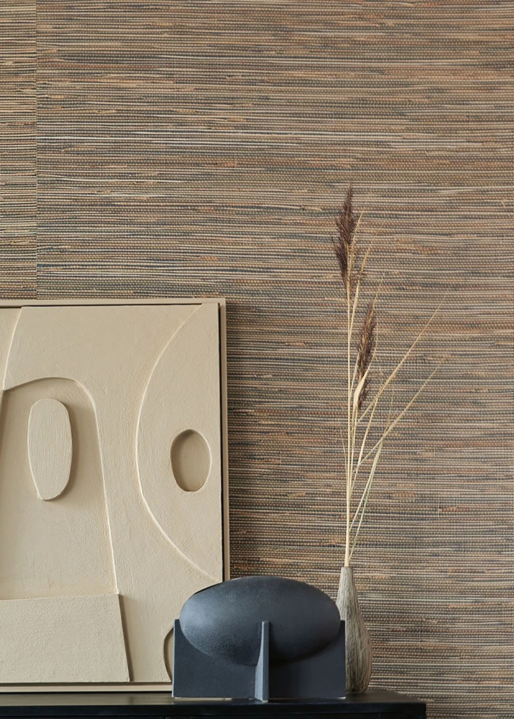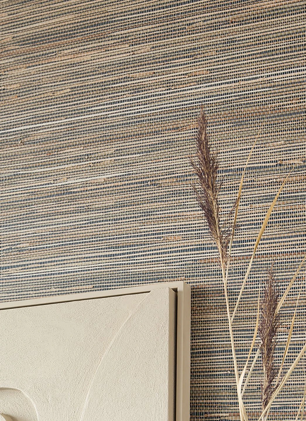 Die warmen Braunbeigetöne der natürlichen Feld- und Berggräser, die für die Tapete Grass on Roll 14 zu einem lockeren Geflecht verarbeitet wurden, machen Ihren Raum zu einem gemütlichen Rückzugsort. Die anthrazitfarbene Papiertapete, die zwischen den Gräsern zu erkennen ist, betont den lockeren, luftigen Charakter des Gewebes aus Naturmaterial. Sie schaffen sich ein angenehmes Raumklima für Wohnzimmer oder Büro.
