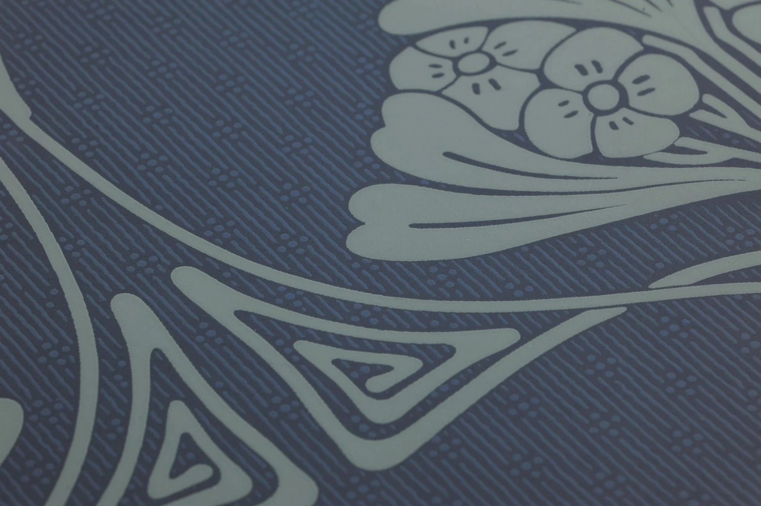Blumen und Blätter verbinden sich mit abstrakten Formen zur unverwechselbaren Ästhetik des Jugendstils. Liebevolle Details sorgen dafür, dass das elegante Schwarzblau des Hintergrunds kein flacher Untergrund bleibt, sondern lebendig wirkt. Mit ihren Ornamenten in zartem Graugrün macht die Tapete Ihre Wand zu einem echten Hingucker. Die Papiertapete ist auch in der Farbvariante Minttürkis erhältlich.