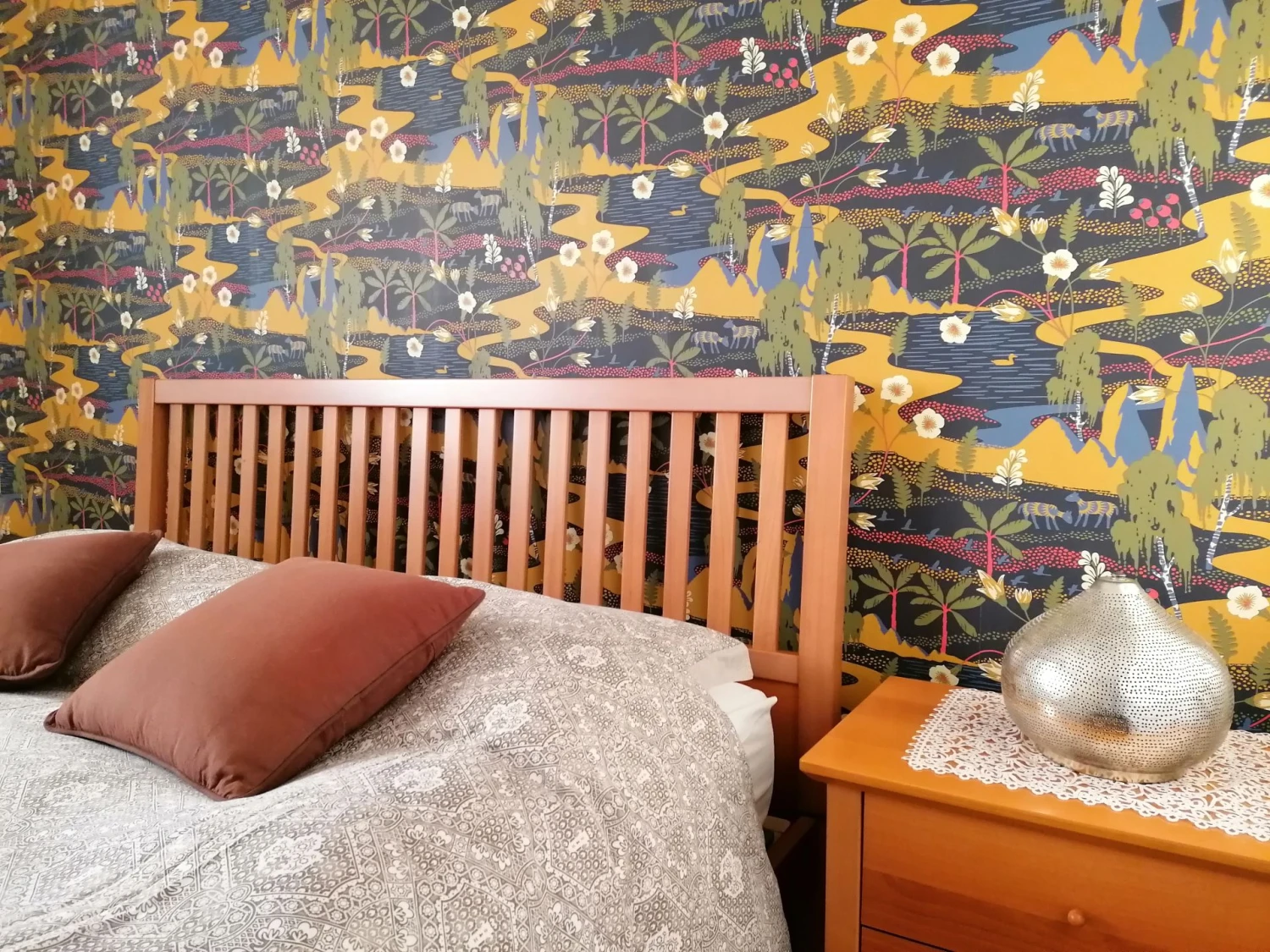 Auf Reisen gehen, ist mit Design Tapete Hesperia nicht schwer. Tiefe Täler, hohe Berge, tropische Kokospalmen, kleine Seen und blühende Landschaften warten darauf, den Raum zu füllen. Das eindrucksvolle Motivmuster in kontrastreichen Farben wirkt kunstvoll abstrakt und erschafft für das Auge eine dynamische Struktur.