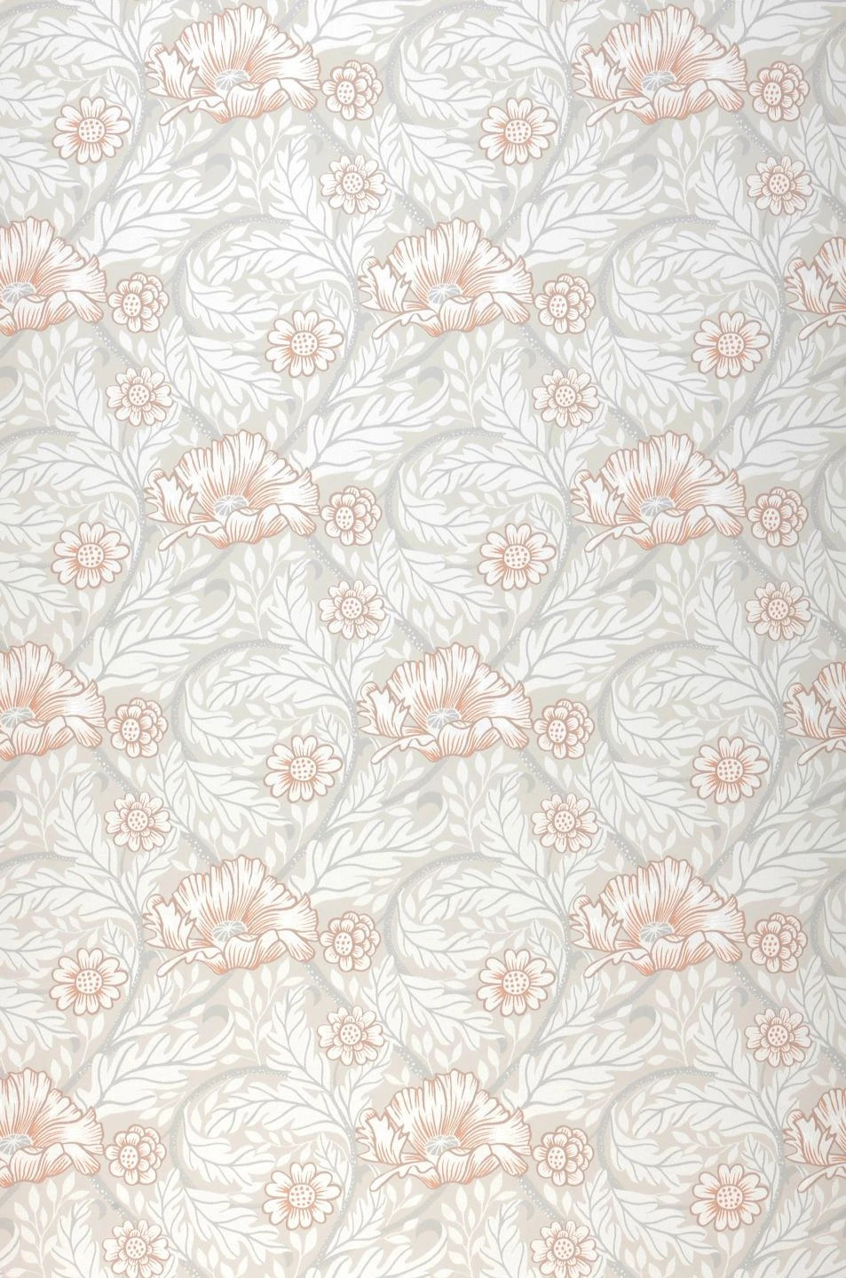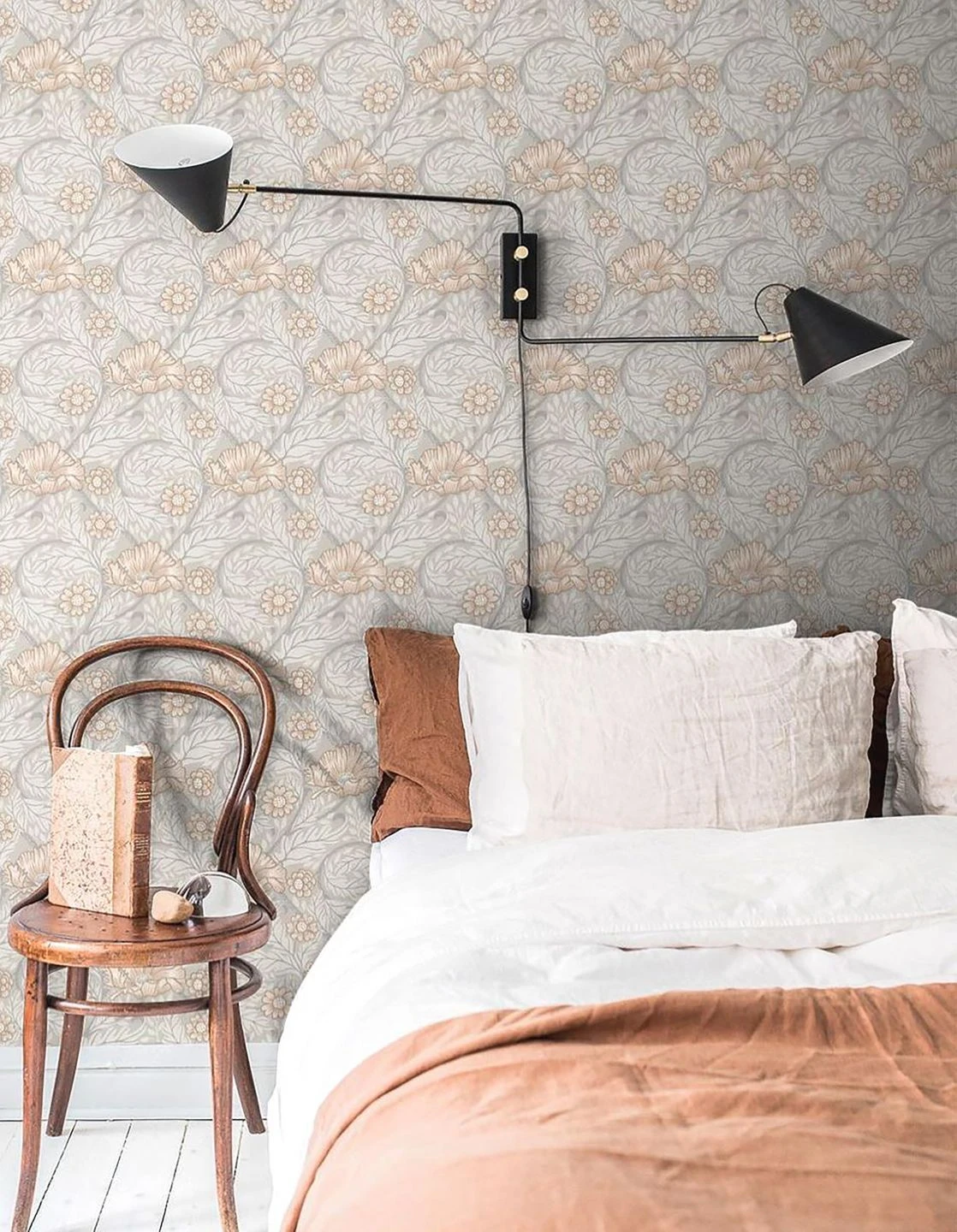 In der Motivwahl und Anordnung kommt die Vliestapete klassisch daher: Große Mohnblumen mit ihren zarten Blättern, kleinere Blüten und geschwungene Blattranken wirken nur auf den ersten Blick zufällig ineinander verschlungen. Aus etwas Entfernung betrachtet, offenbart sich die Regelmäßigkeit des Musters. Die Beschränkung auf helles Orangebraun, Blassbraun, Hellgrau und Weiß auf dem seidengrauen Grund macht „Hilde“ gleichermaßen leicht wie elegant.