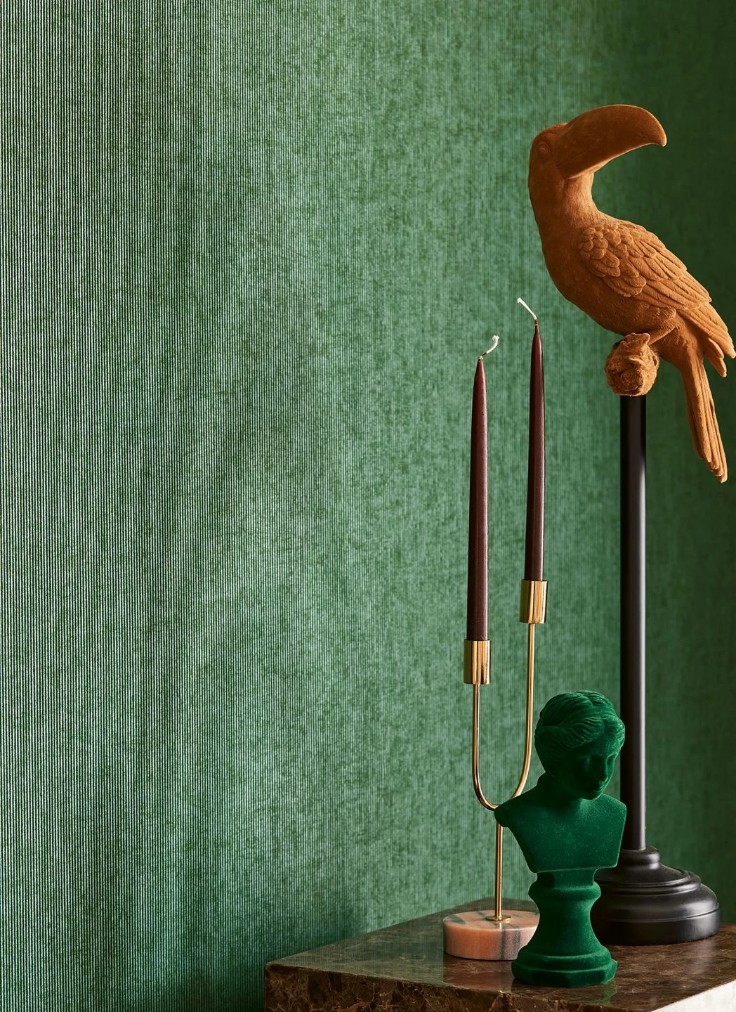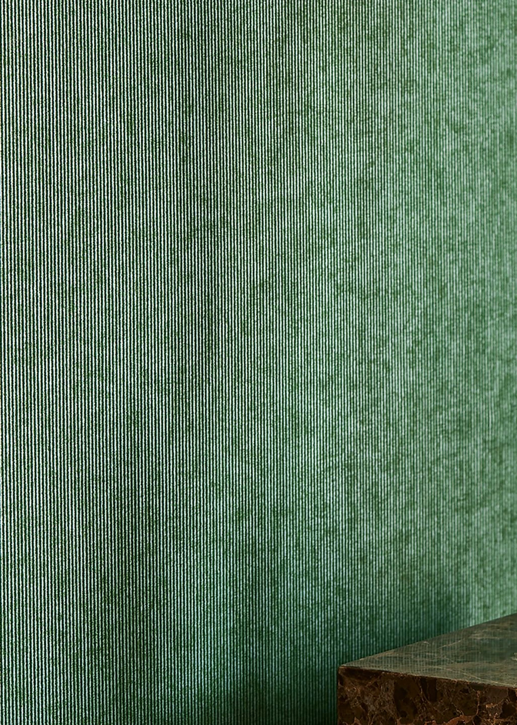Feine Streifen in Pastelltürkis wechseln sich mit Streifen aus dunkelgrünem Flock ab und geben der Vliestapete eine angenehme, fühlbare Oberflächenstruktur, mit der sie Ihre Wand belebt. Es entsteht ein schlichter und gleichzeitig lebendiger Gesamteindruck, der wohlige Wärme ausstrahlt. Die Grüntöne bieten eine schöne Kulisse für Möbel in natürlichen Holztönen, aber auch für ausdrucksstarke, extravagante Einrichtungselemente.