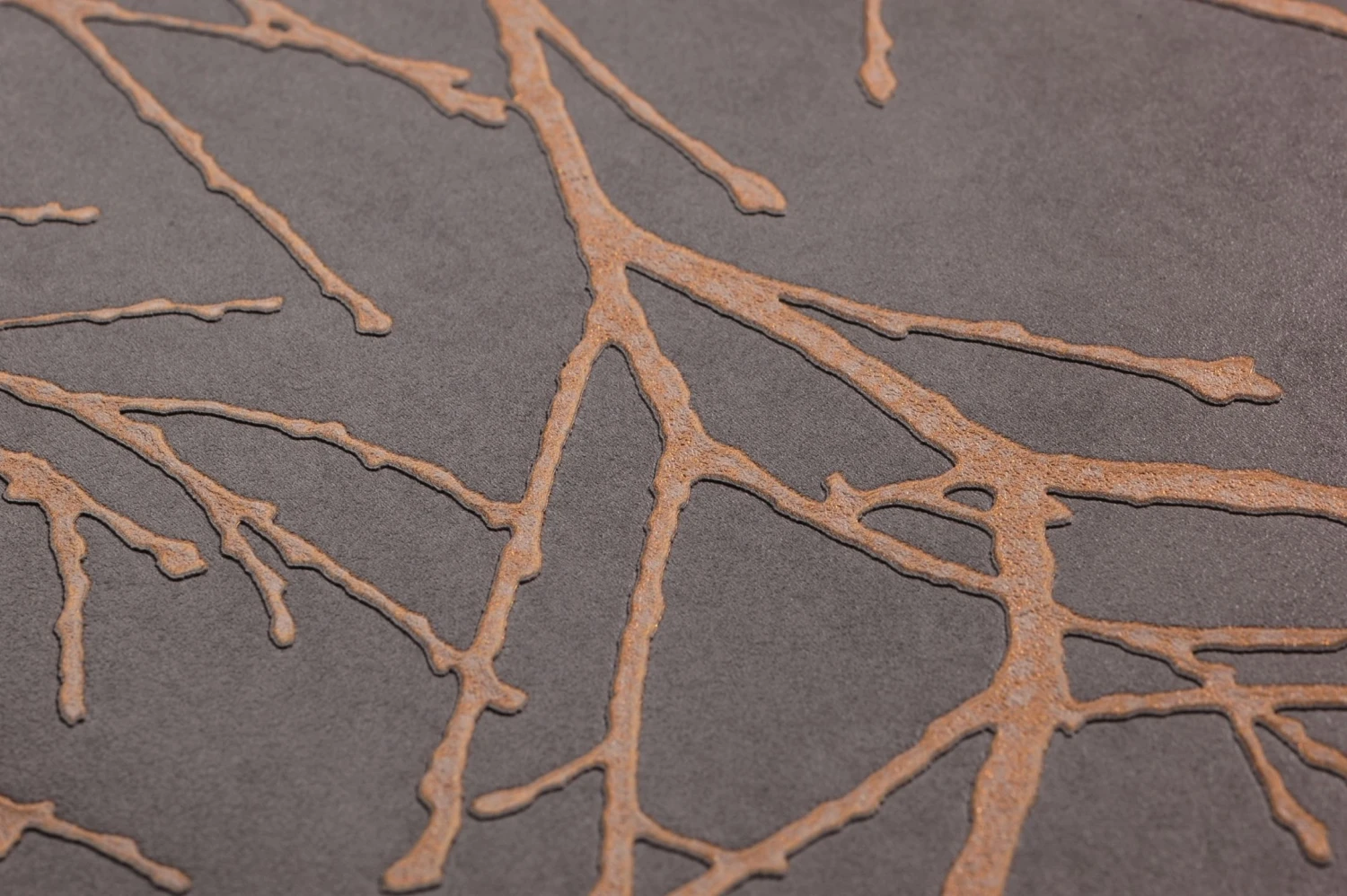 Verblüffend echt wirken die filigranen Zweige auf dem dunklen graubraunen Untergrund der Vliestapete Kansai, der im Zusammenspiel mit dem Braunbeige der Zweige anheimelnde Geborgenheit ausstrahlt. In die Vinyloberfläche sind die Zweige als fühlbares Relief eingearbeitet, was sie umso natürlicher wirken lässt. Gleichzeitig sorgt das hoch waschbeständige Oberflächenmaterial dafür, dass Sie Kansai auch in einem schicken Badezimmer einsetzen können.