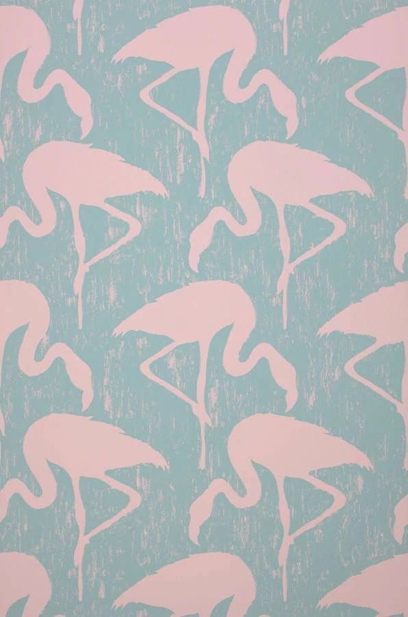 Die Silhouetten graziler Flamingos machen Ihre vier Wände zu einem lebhaften Blickfang. Die faszinierenden Vögel sind in einer natürlichen Pose eingefangen. Ihr zartes Hellrosa verbindet sich mit dem pastelltürkisfarbenen, mit zartrosa Reflexen belebten Untergrund zu einer hellen, exotischen Atmosphäre. Besonders wirkungsvoll kommt die Papiertapete in Verbindung mit weißen Einrichtungselementen oder einer passenden Wandfarbe zur Geltung.