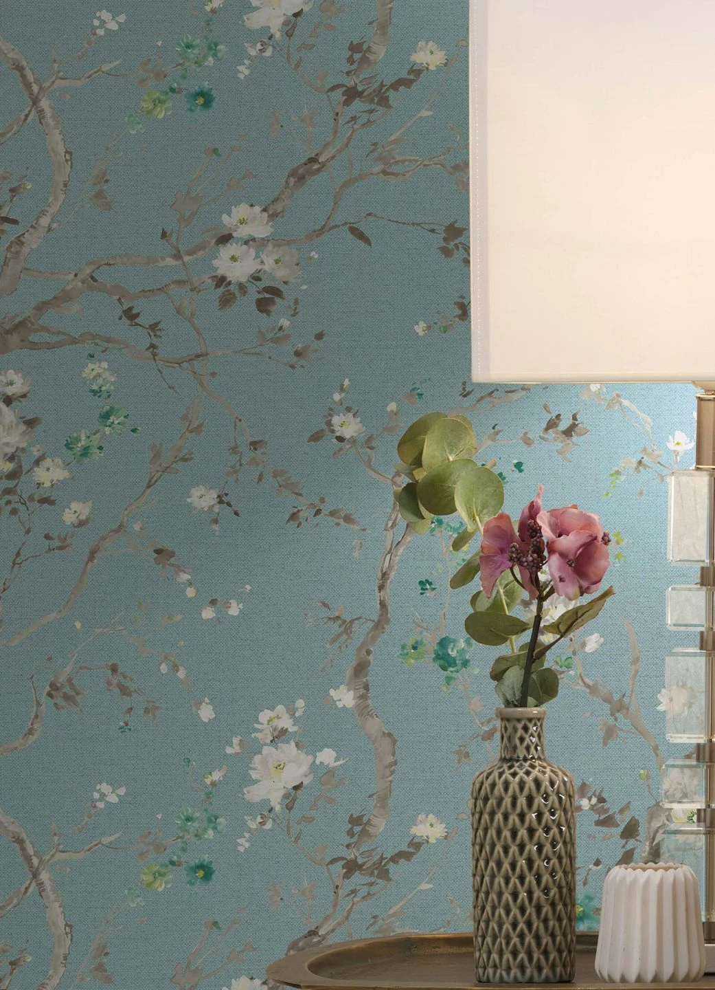 Ein zarter Blütentraum aus Japan grüßt in frischen Blau-Grautönen. Die florale Vliestapete lässt die feinen Zweige mit sanften Blüten gen Himmel wachsen und zeigt, dass sich Leben unendlich verästeln kann. Ein entspannter Platz zum Denken, Energie tanken und Sinnieren ist mit Malabar im Handumdrehen geschaffen.