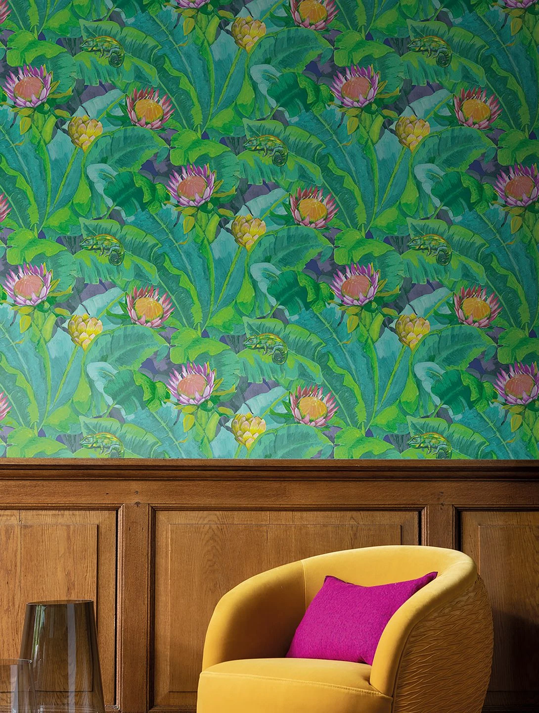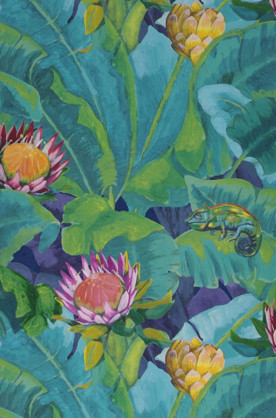 Die großen Blüten mit ihren warmen Nuancen von Rosa und Orange und die kühlen Grün- und Türkistöne der Blätter beschwören die farbenprächtige Welt einer Südseeinsel herauf. Wie ein Gemälde schmückt die Tapete Ihre Wände und zaubert die verschwenderische Vegetation der Tropen in Ihren Raum. Die Farben scheinen wie von selbst in der Sonne zu leuchten, und Sie spüren die angenehme Wärme der Luft. Mit ihrem Südsee-Zauber lässt Martinique Sie den grauen Alltag vergessen.
