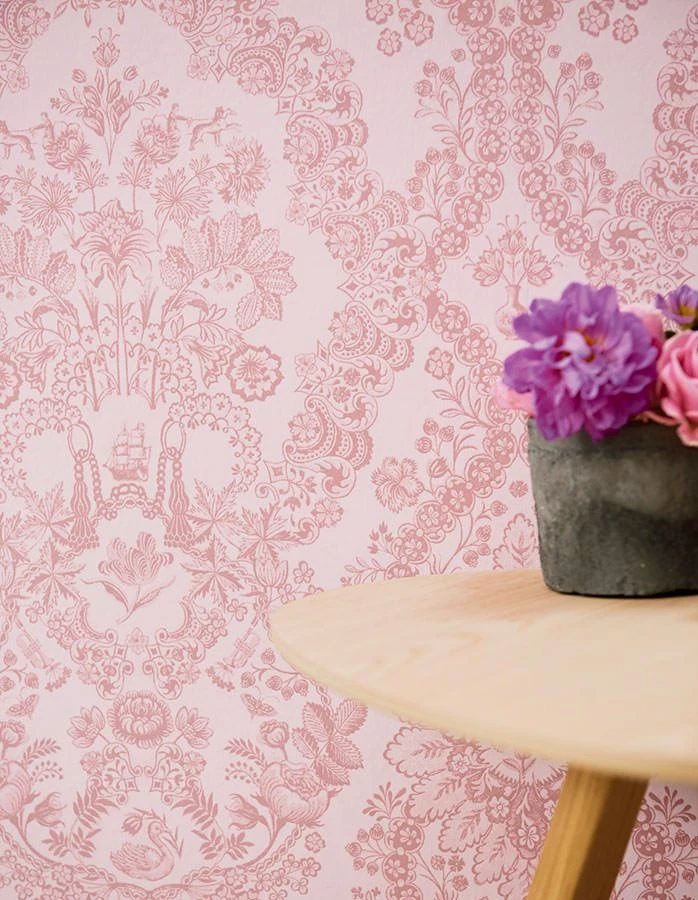 Treiben Sie barocke Romantik in neuer Dimension auf die Spitze – Design Tapete Nuria mit interessantem detailverliebten Barockmuster in Rosa und Rosenholz lädt dazu herzlich ein. Majestätisch galant, sehr jugendlich und ein wenig verspielt, vereint diese Mustertapete wirklich alles, was eine raffinierte Tapete ausmacht. Nicht zu vergessen die detailreichte Musterornamentik, die bis ins Kleinste zu ergründen ist.