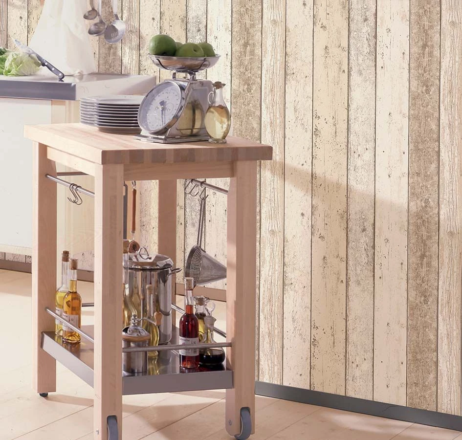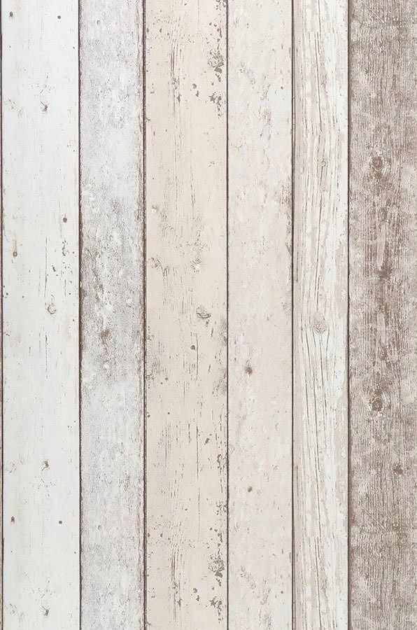 Fast Ton in Ton sind die hellen Farben dieser Holzoptik-Tapete aufeinander abgestimmt: Blassbraun, Cremeweiß und Grauweiß wirken natürlich und freundlich zugleich. Die Bretter zeigen deutliche Spuren der Zeit und fügen zum Landhausstil oder zum skandinavischen Stil die Aura erlebter Geschichten hinzu. So wird Ihr Raum zum Mittelpunkt der legeren Gemütlichkeit und des zwanglosen Wohlfühlens. Die Vinyloberfläche ist scheuerbeständig und damit auch fürs Bad geeignet.