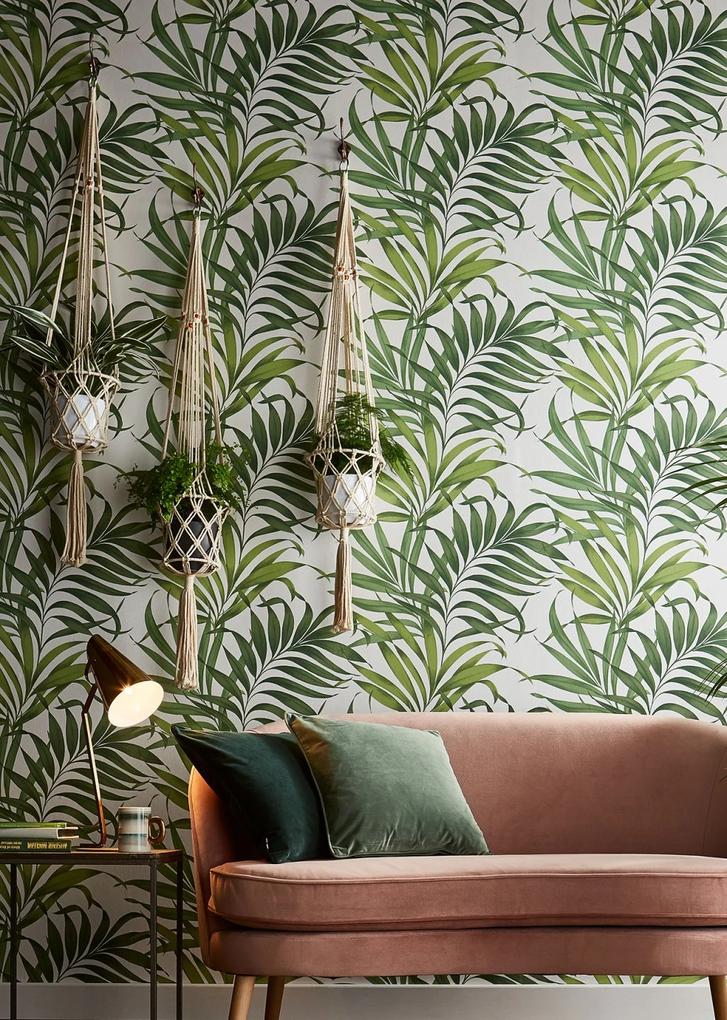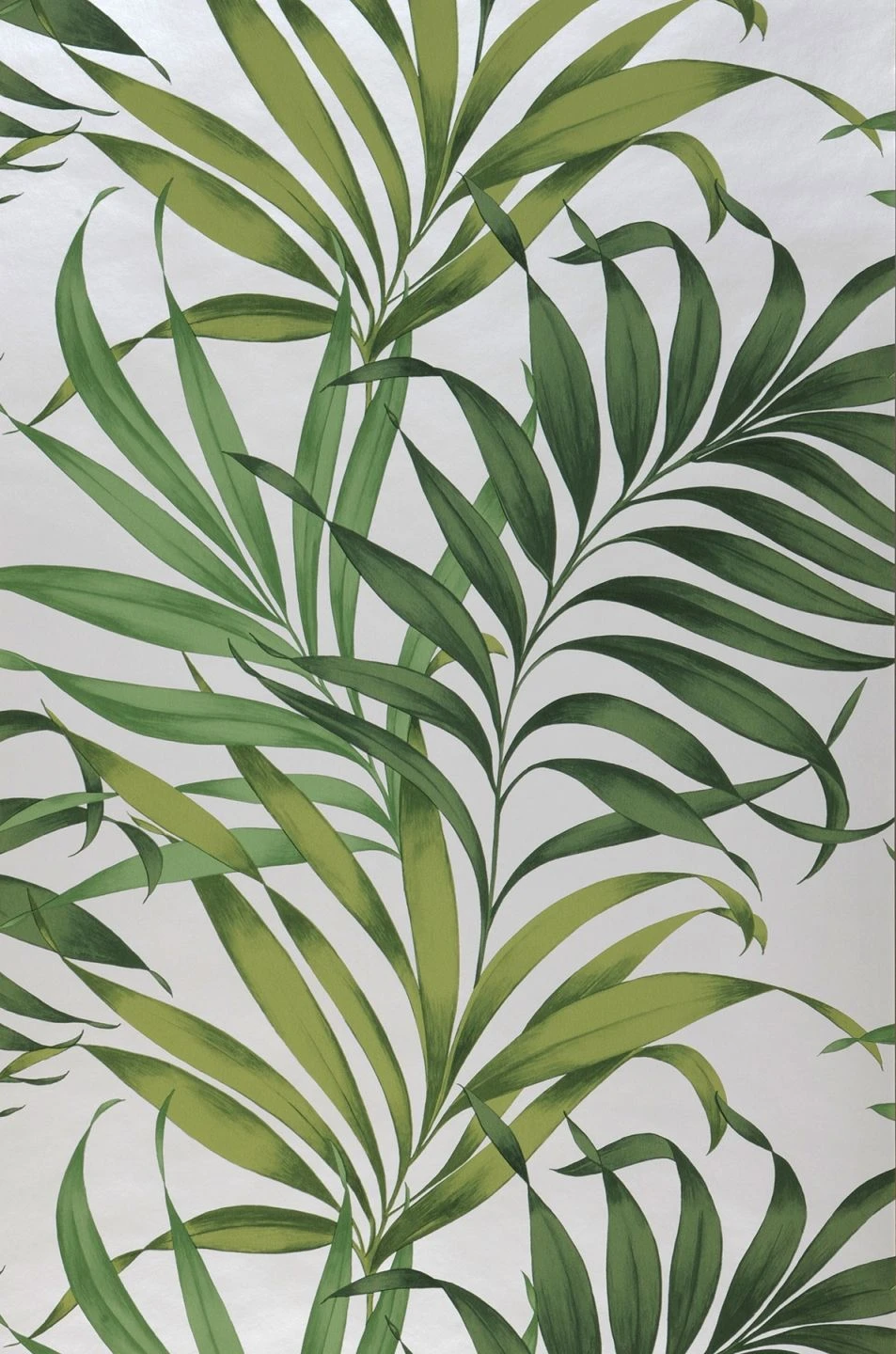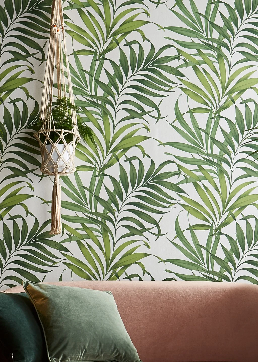 Der botanische Garten im Innenraum rückt mit Tapete Paradiso in herzhaften Grüntönen in greifbare Nähe. Die munteren Farnschwingel wirken sehr plastisch und dekorativ, was eine Akzentwand sehr großzügig gestaltet. Schimmerndes Perlweiss als Hintergrundfarbe der pflegeleichten Vliestapete bringt erhellende Aspekte ins Spiel.