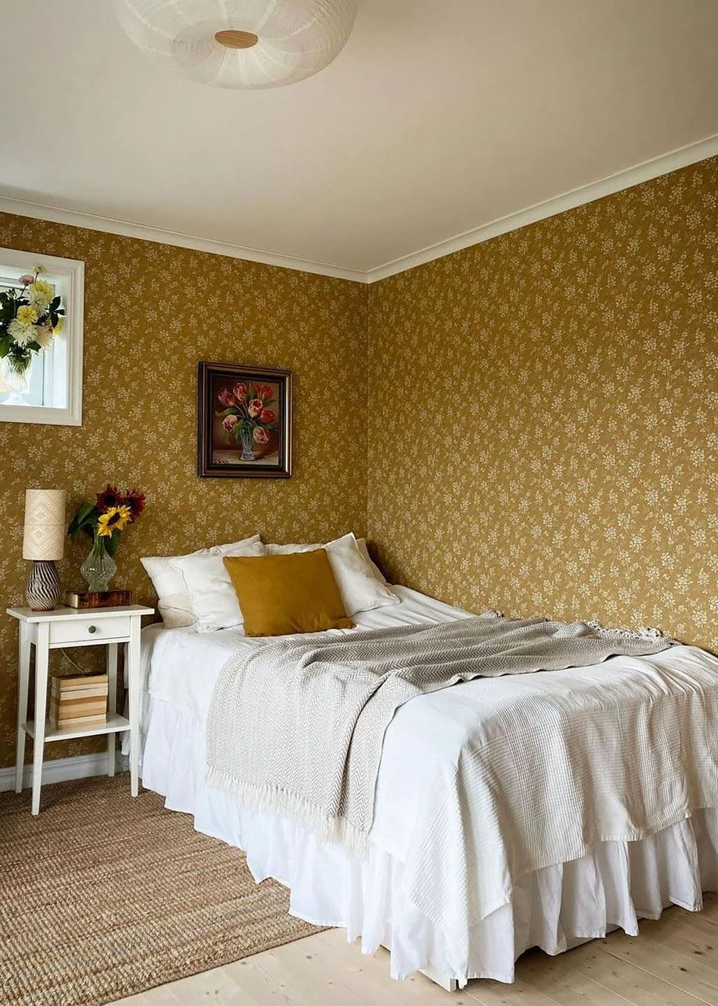 Perfekt zum Landhaus-Stil, aber auch zum skandinavischen Stil oder Shabby Chic passt die Vliestapete Patricia mit ihrem dezenten, freundlichen Blumenmuster. Mit ihrem raffinierten Farbauftrag auf dem ockerfarbenen Grund lassen die cremeweißen Blüten und Blattranken an Holzschnitt- oder Stempeltechnik denken. Zusammen mit den cremeweißen Punkten, die den Grund lebendig machen, strahlen sie gelassene Gemütlichkeit und Gastfreundschaft aus.