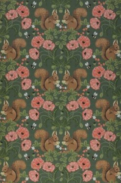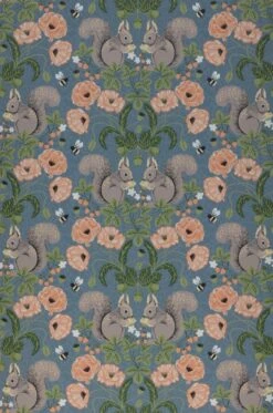 Die Vliestapete Pihla spielt mit verschiedenen Elementen des traditionellen Tapetendesigns. Große und kleine Blüten, stilisierte Blätter und Ranken, dazwischen putzige Eichhörnchen, Bienen und reife Früchte sind in einer klassischen Symmetrie angeordnet. Dazu passen die gedeckten Blau- und Grüntöne, von denen sich die Orangetöne der Blüten angenehm abheben. Gleichzeitig bringt die Auswahl der Motive eine Lebendigkeit und Leichtigkeit mit, die Pihla zu einem wunderschönen Begleiter für eine Vielzahl von Stilen und jedes gewünschte Zimmer machen.