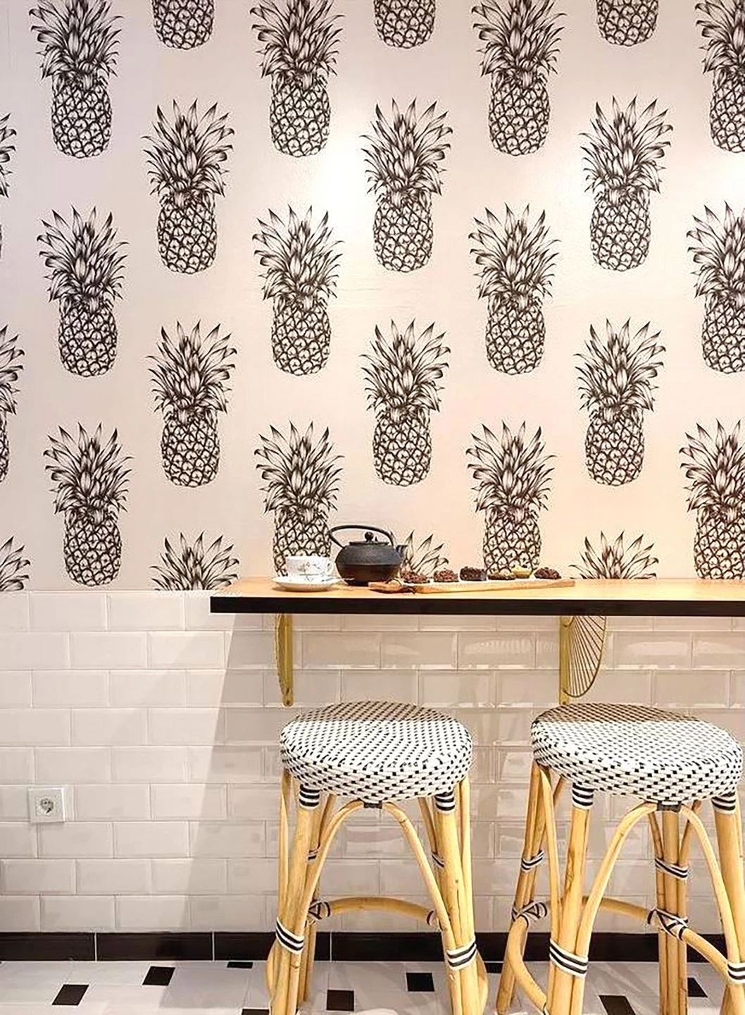 Alles Ananas – Die Tropenfrucht mit unwiderstehlichem Geschmack lässt auch an der Wand das Wasser im Munde zusammenlaufen. Im Stil detailgetreuer Grafikzeichnung und mit versetzter Musteranordnung erhält die ausgefallene Tapete ihre künstlerische Note. In puristisch modernen Wohnstilen setzt sie klaren Strukturen die fruchtige Krone auf.