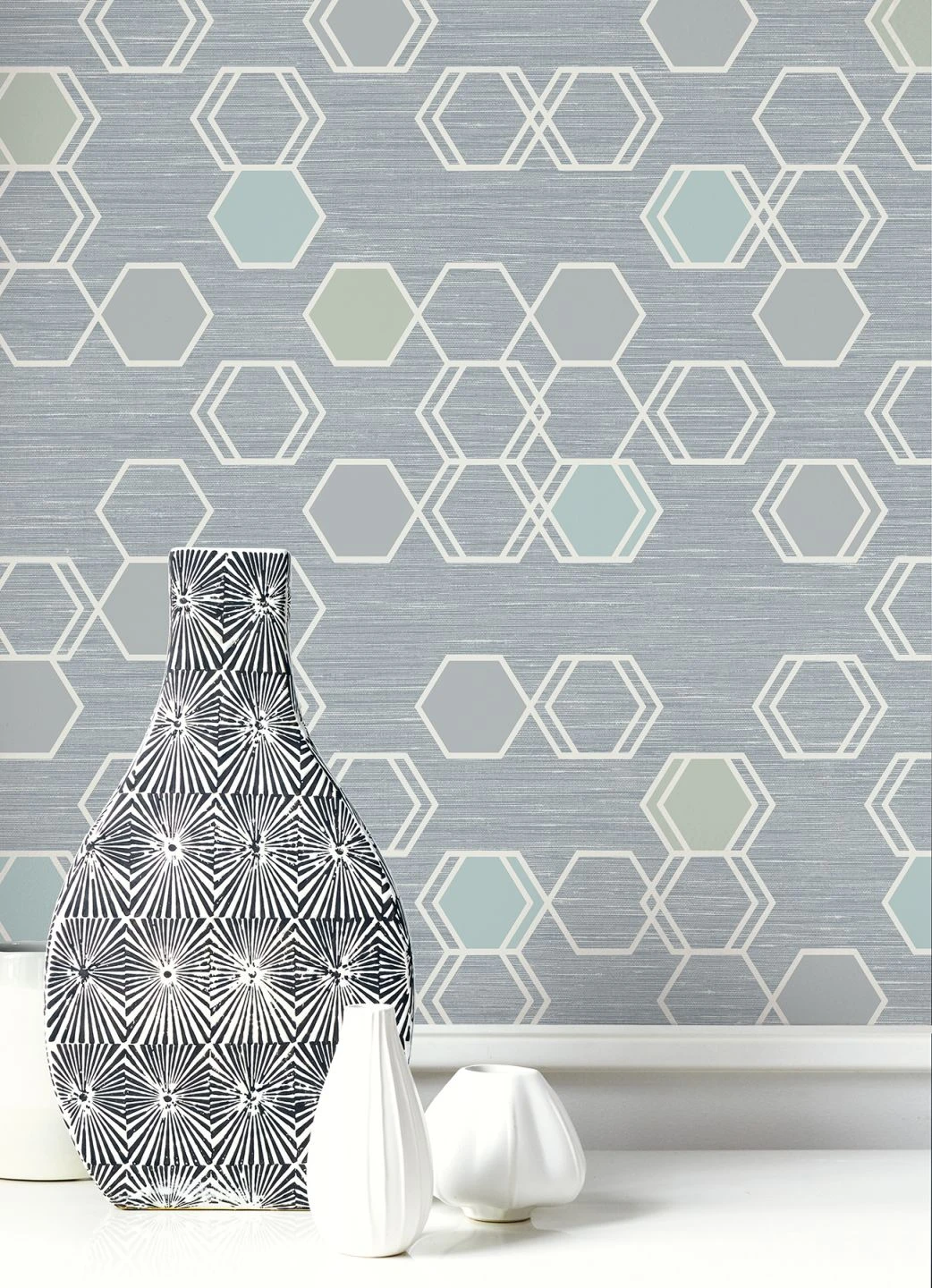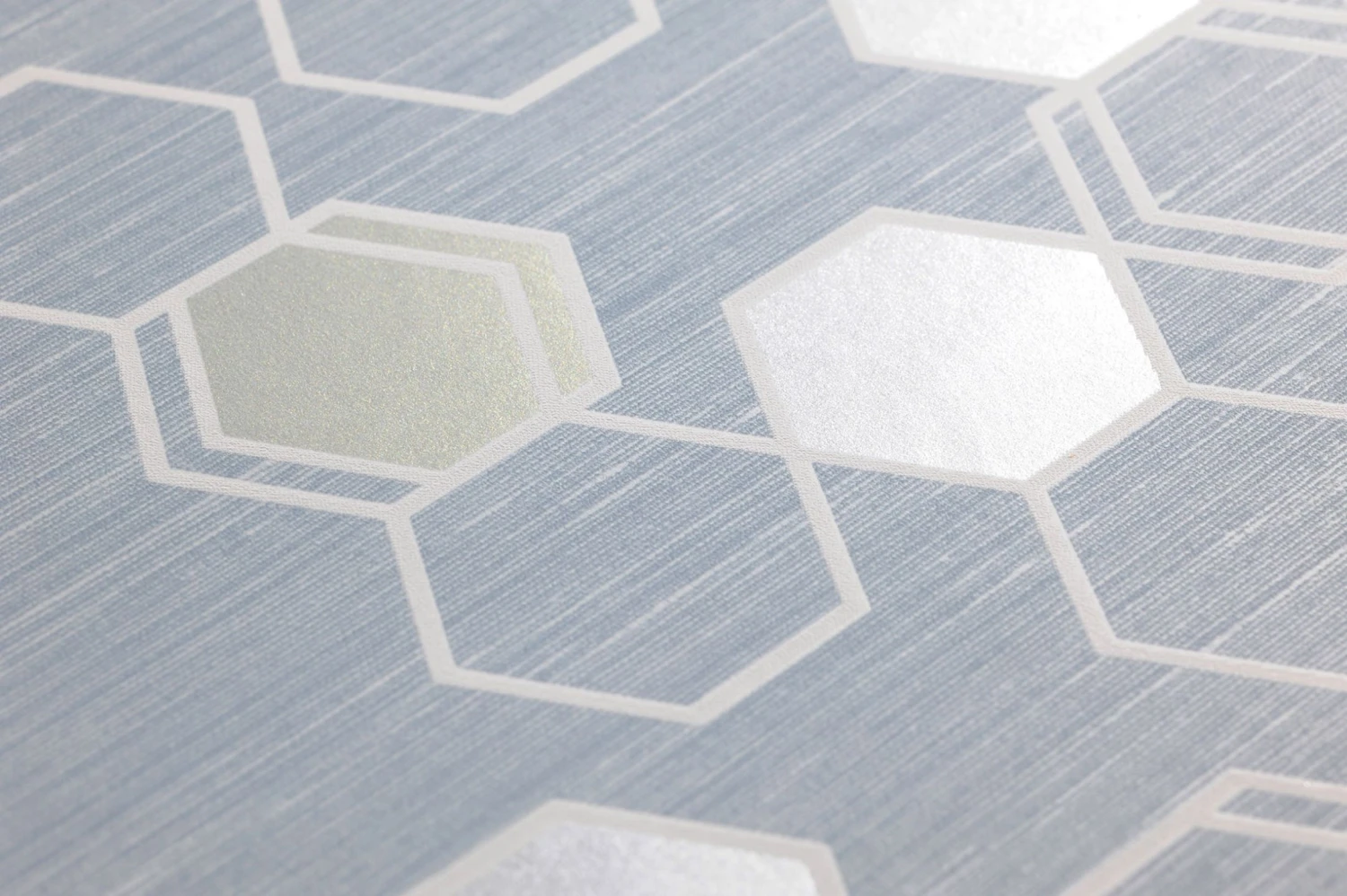 Sechsecke in zart schimmernden Pastellfarben und der von blaugrauen Schraffuren belebte, matte Hintergrund machen den warmherzigen Retro-Charme dieser Papiertapete aus. Nehmen Sie ihre Musterfarben Blassgelb, Cremeweiß oder Grauweiß in der Farbe der anderen Wände wieder auf und erzielen Sie einen unverwechselbaren Look für Ihr Zimmer!
