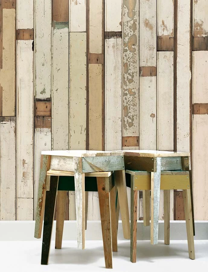 Alte, schon benutzte Holzbretter mit den Resten früherer Anstriche, Löchern von herausgezogenen Nägeln, abgescheuerten Stellen, jedes einzelne Brett könnte eine Geschichte erzählen … Die Holzoptik-Tapete „Scrapwood“ ist Shabby Chic in Perfektion. Der Digitaldruck erzeugt die täuschend echte Illusion einer Bretterwand mit all der rustikalen Gemütlichkeit, die vom Naturmaterial Holz ausgeht. Die beigebraune Farbe des Holzes mit Resten cremefarbener Anstriche lässt sich vielseitig kombinieren.