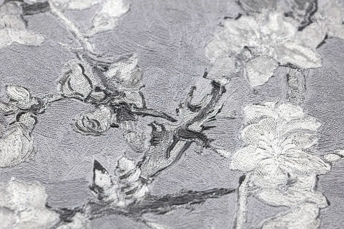 Wie eine schwarzweiße Reproduktion der berühmten „Mandelblüten“ von van Gogh mutet die exklusive Vliestapete an. Im Vinyl der Oberfläche können Sie die kraftvollen Pinselstriche fühlen, mit denen die zarten Blüten und die kräftigen Zweige des Mandelbaums auf die Tapete gebannt wurden. Die Farbgestaltung in Grautönen lässt Ihnen eine Vielzahl von Möglichkeiten. Besonders praktisch: Dank der hoch waschbeständigen Vinyloberfläche können Sie die Tapete auch im Bad einsetzen.