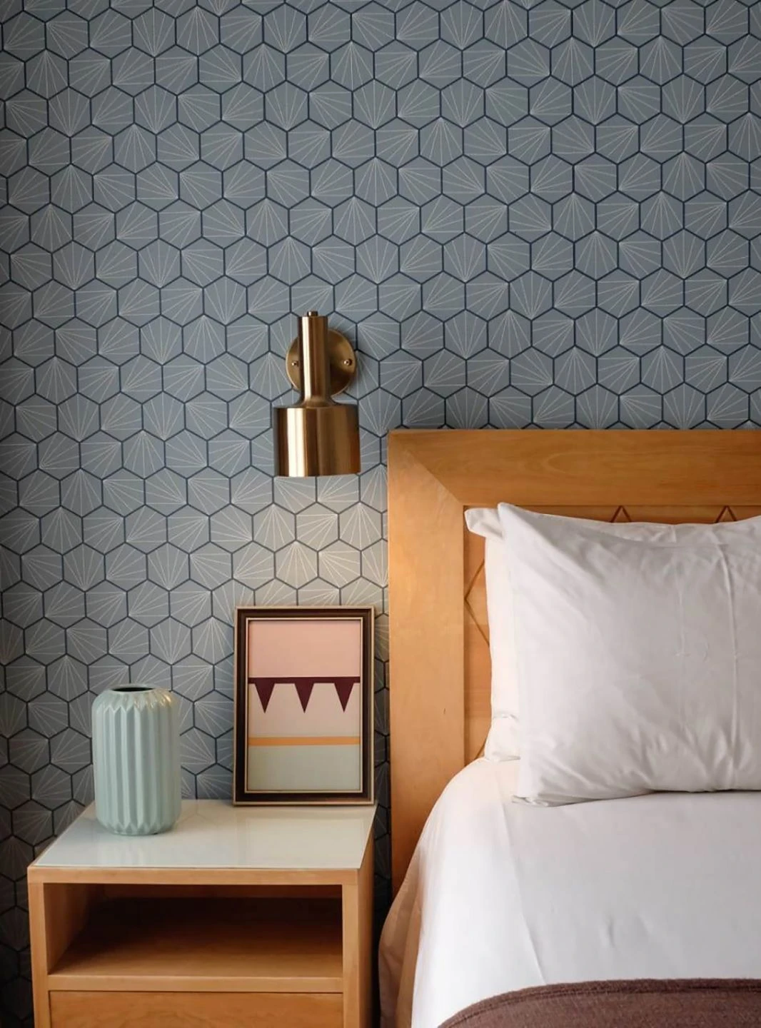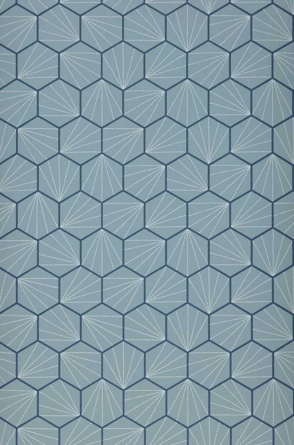Geordnet, aber gleichzeitig lebendig wirkt das geometrische Muster dieser Vliestapete. Dicht an dicht wie Waben nutzen Sechsecke die vorhandene Fläche perfekt aus. Umrandet von graublauen Fugen und in sich strukturiert durch grauweiße, von einem Punkt ausgehende Strahlen, erzeugen die mintgrauen Sechsecke wie Kacheln eine ruhige, kühle Gelassenheit. Helle Farben und Holzmöbel oder Blautöne ergeben ein tolles Gesamtbild.