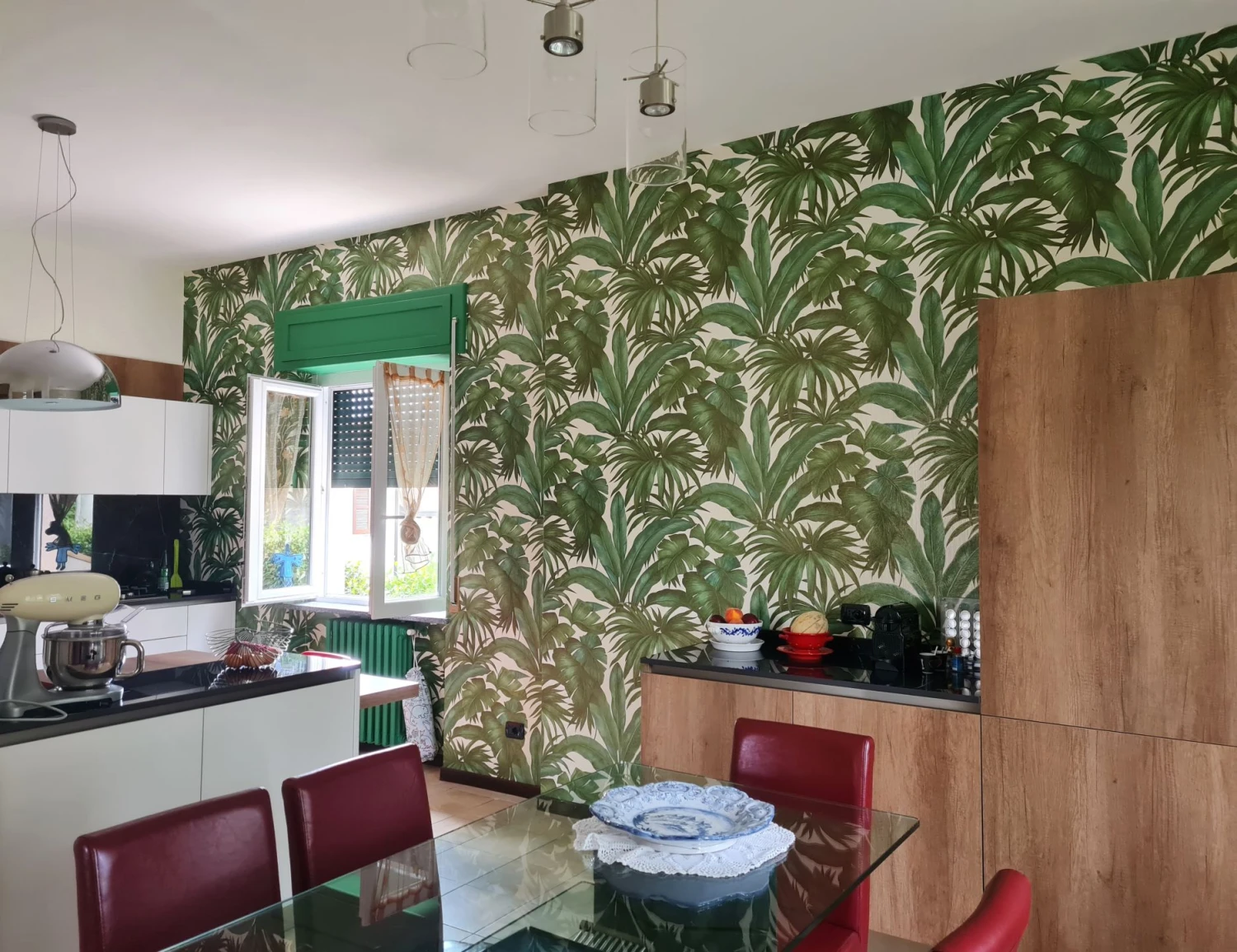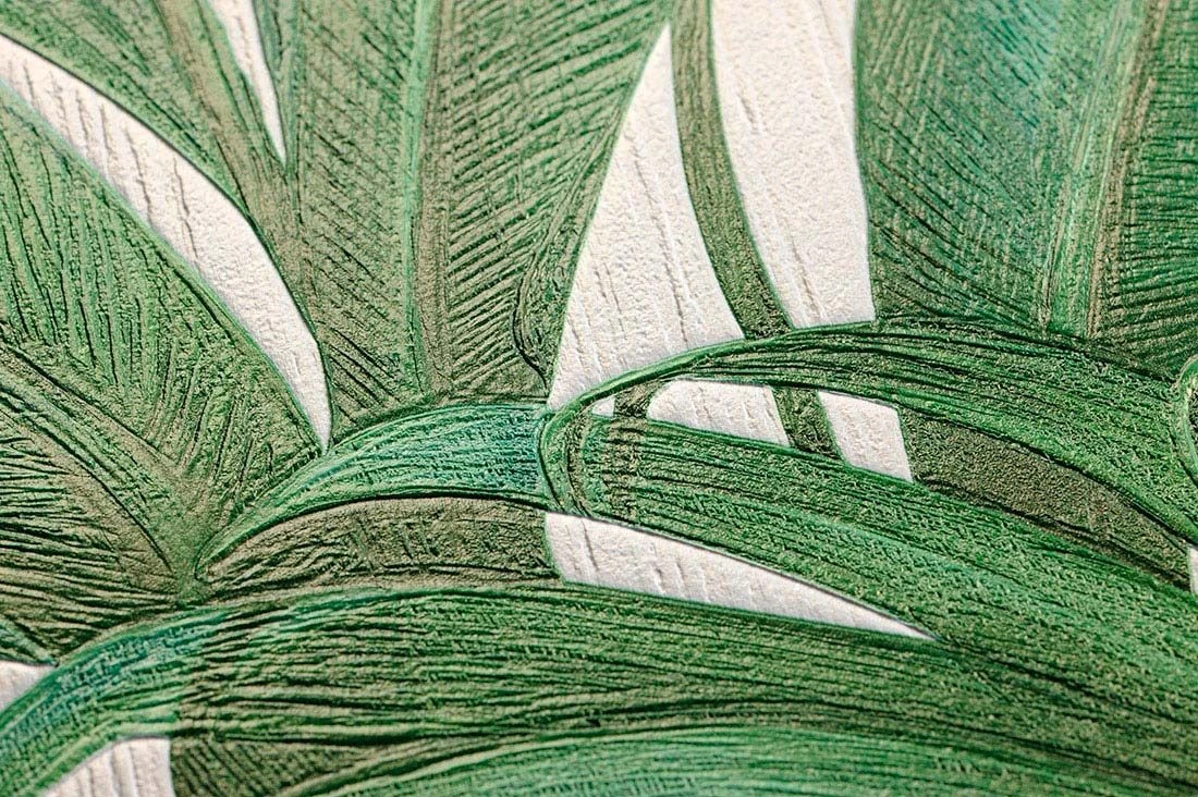 Die exklusive Versace Designtapete eröffnet Ihnen den tropischen Palmengarten, wo immer Sie sich ihn wünschen. Dazu noch so realistisch, dass man die Blätter am liebsten berühren würde. Der verblüffende Effekt ergibt sich durch die besondere Reliefstruktur und die authentische Nachempfindung des Blattaufbaus. Unterschiedliche Grüntöne auf cremeweißem Fond unterstreichen die üppige Wirkung zusätzlich.