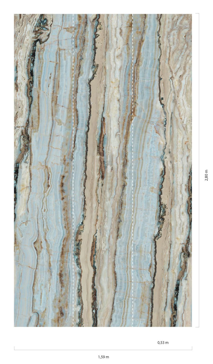 Das dreiteilige, beliebig erweiterbare Wandbild imitiert täuschend echt die charakteristische Zeichnung von Marmor. Natürliche Türkisblau-, Grau- und Ockertöne verleihen dem Industrial Look oder Shabby Chic eine kühle, elegante Note und eine stilvolle Lebendigkeit. Möbel in hellen Naturtönen vollenden das Styling Ihres Wohnzimmers, Schlafzimmers oder Flurs. Dank der hoch waschbeständigen Vinyloberfläche lässt sich auch Ihr Bad in die Marmoroptik kleiden.